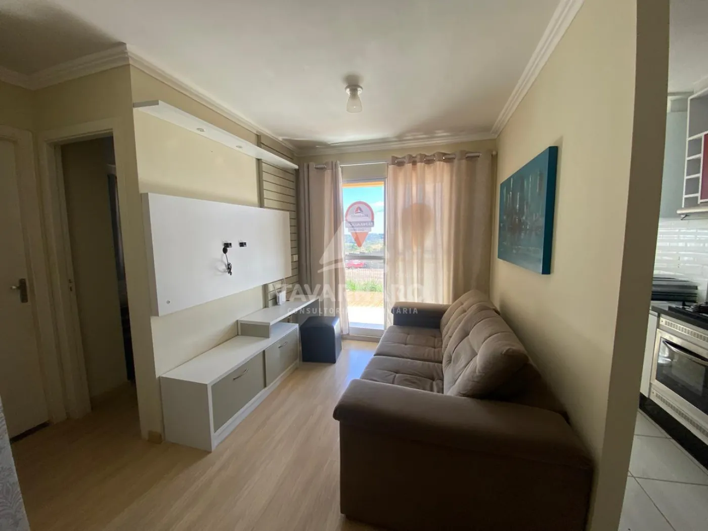 O imóvel conta com 02 dormitórios equipados com armários e camas, sala aconchegante com sofá e painel de TV, além de cozinha planejada com armários e máquina de lavar. Possui ainda sacada com churrasqueira, ideal para momentos de lazer, e vaga de estacionamento. Perfeito para quem busca praticidade e conforto em um só lugar.