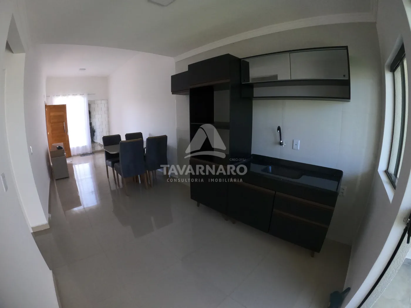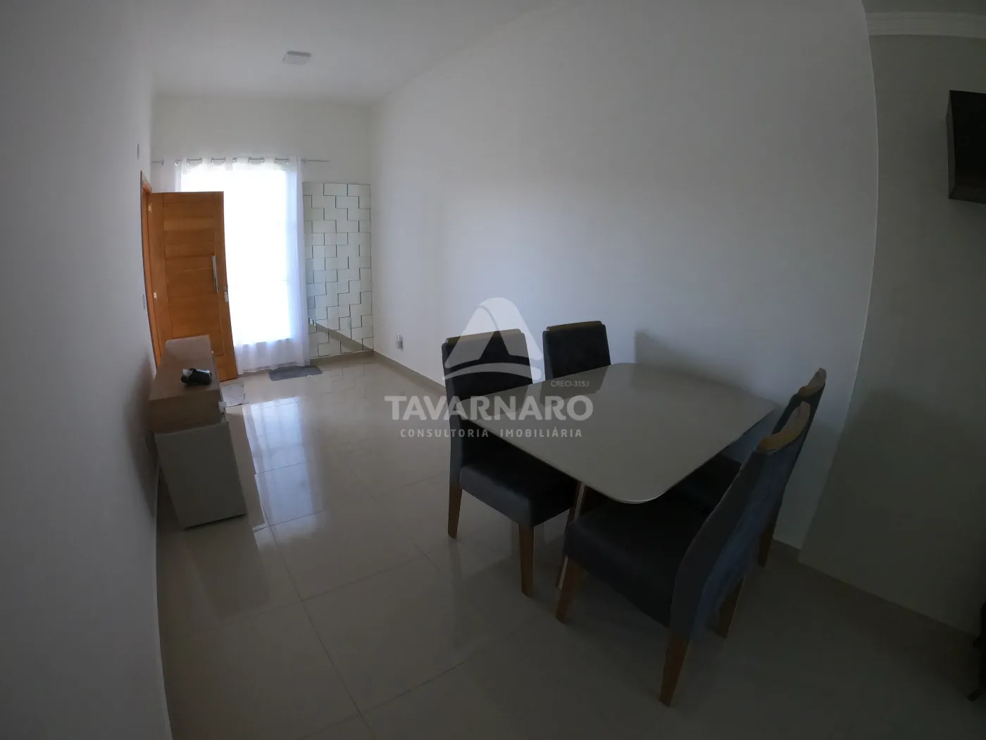 Oferece 02 dormitórios, um deles já equipado com armários, sala e a cozinha integradas, ambas também equipados com armários, mesa com cadeiras e rack. Dispõe também de banheiro social, área de serviço e garagem coberta para maior comodidade dos moradores. Para garantir a segurança, o imóvel conta com um sistema de alarme de monitoramento.