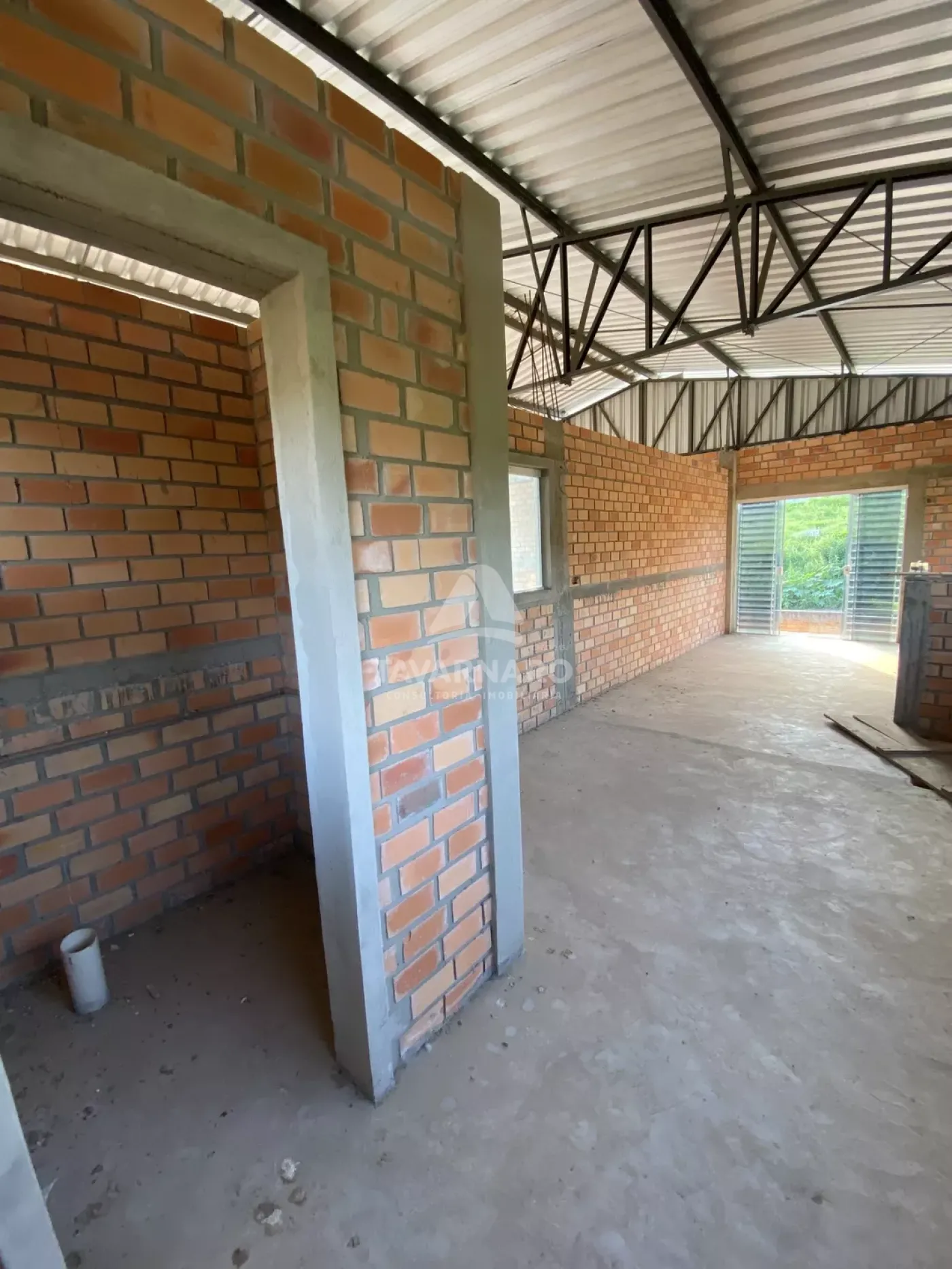 O barracão tem 200m² de área construída, distribuídos em uma sala principal com 2 salas home office, um mezanino em laje com sacada e um lavabo. O espaço abaixo do barracão pode ser utilizado como garagem ou depósito.