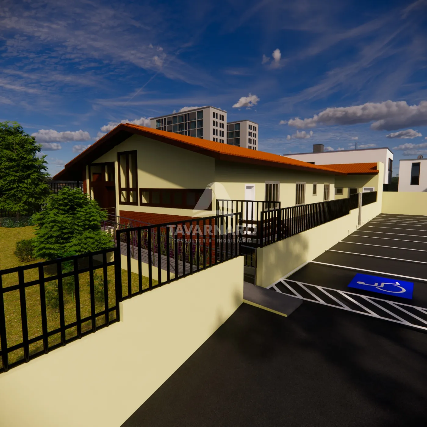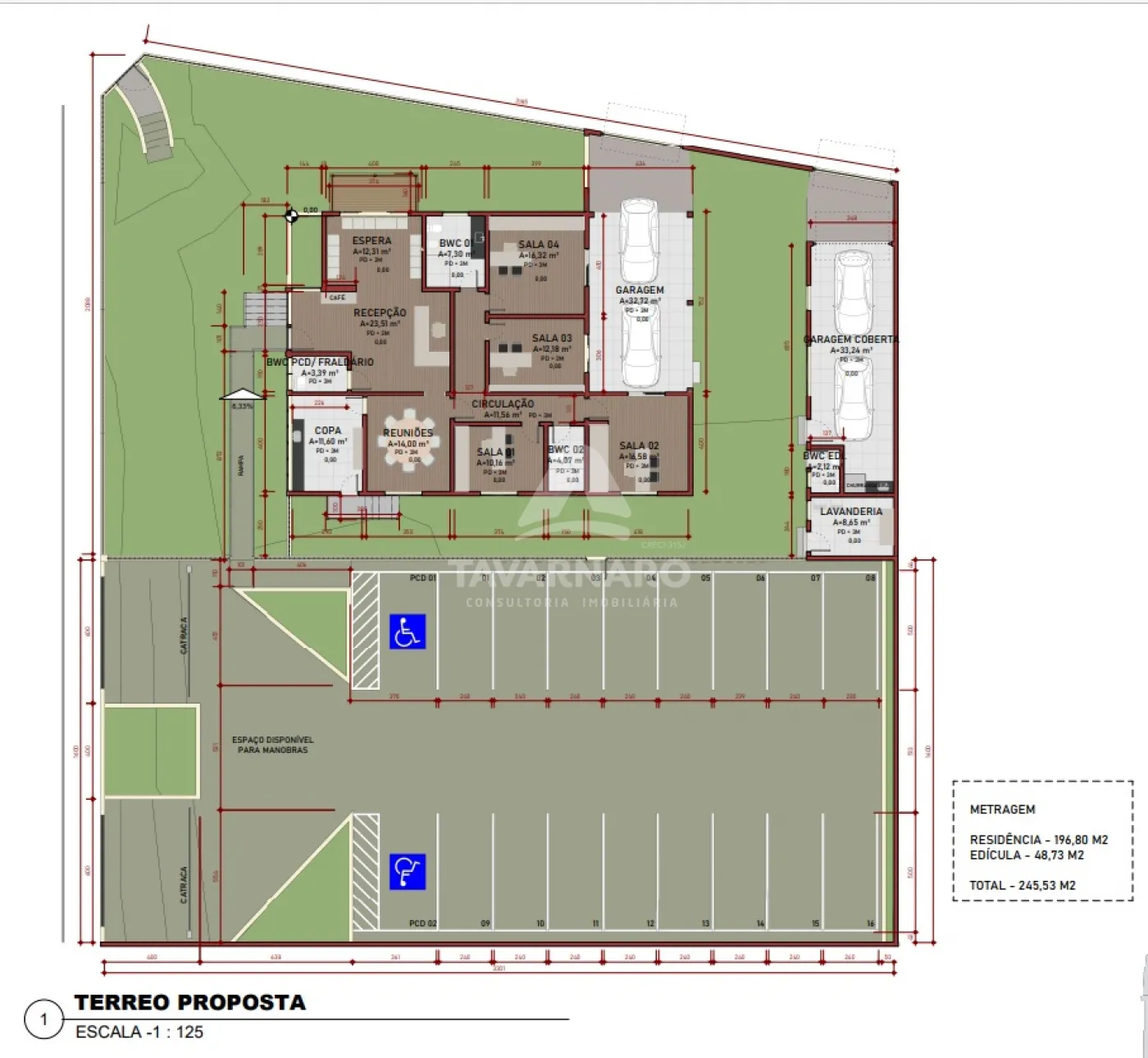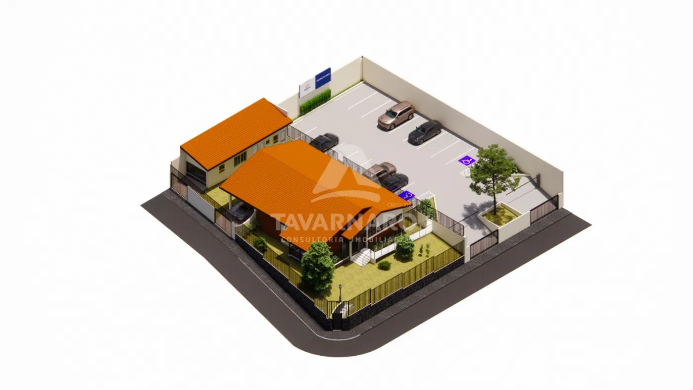 São 245,53m² de área construída distribuídos em casa e edícula. No imóvel principal possui recepção, copa, 3 banheiros, sendo 1 PNE, 6 salas amplas e 2 vagas privativas cobertas. Na edícula possui 1 banheiro, lavanderia e 2 vagas privativas cobertas. Imóvel também conta com um pátio lateral com 18 vagas de estacionamento compartilhadas, sendo 2 PNE, com jardim e uma fachada charmosa e atrativa.