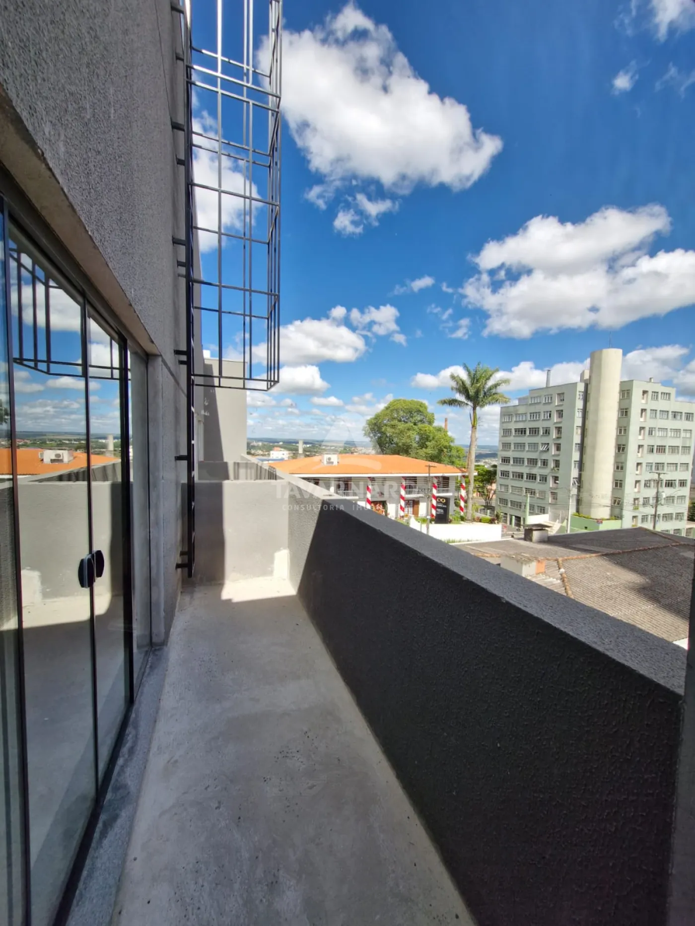 Esta sala, fica no piso superior e possui 39,67m², pé direito de 3 metros, e sacada privativa.