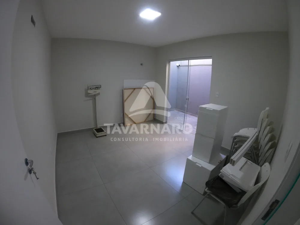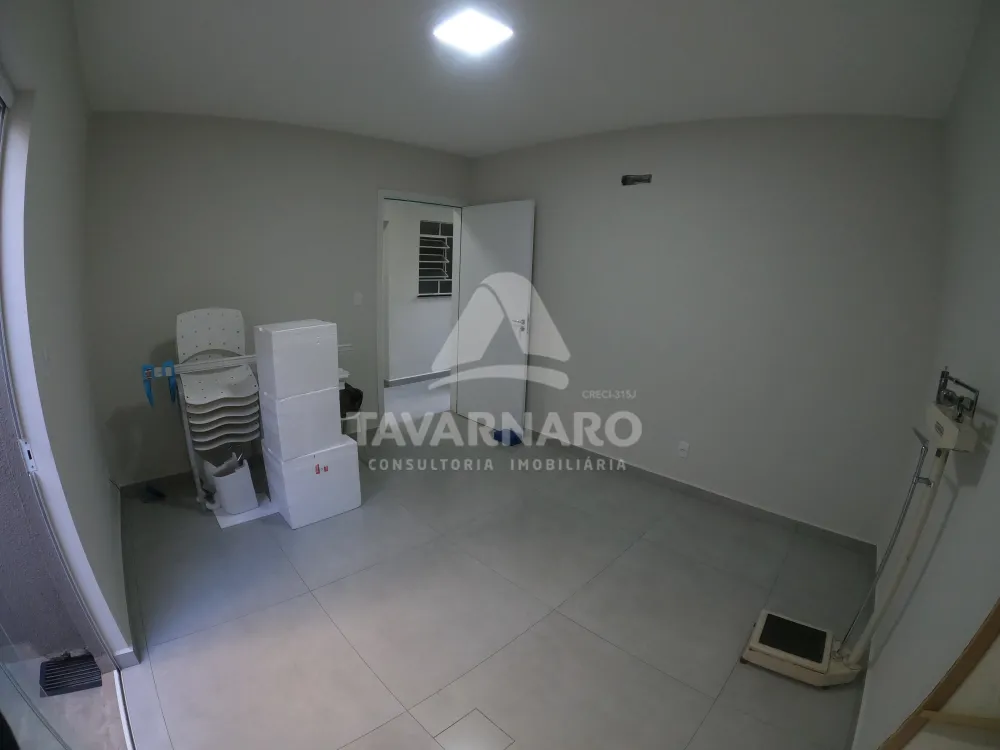 2 consultórios com pias, sendo um deles com armários planejados e com pequeno espaço externo para circulação;