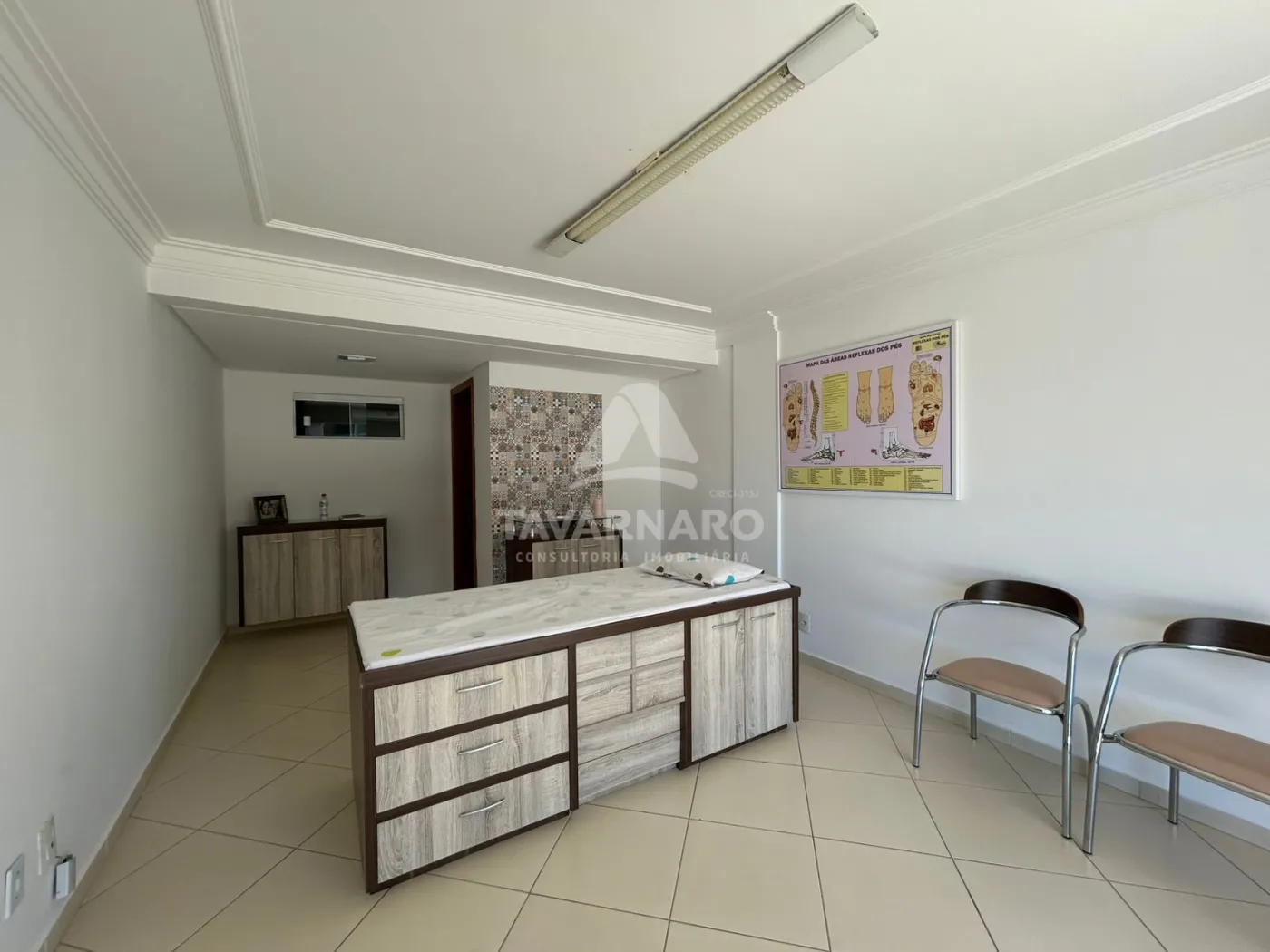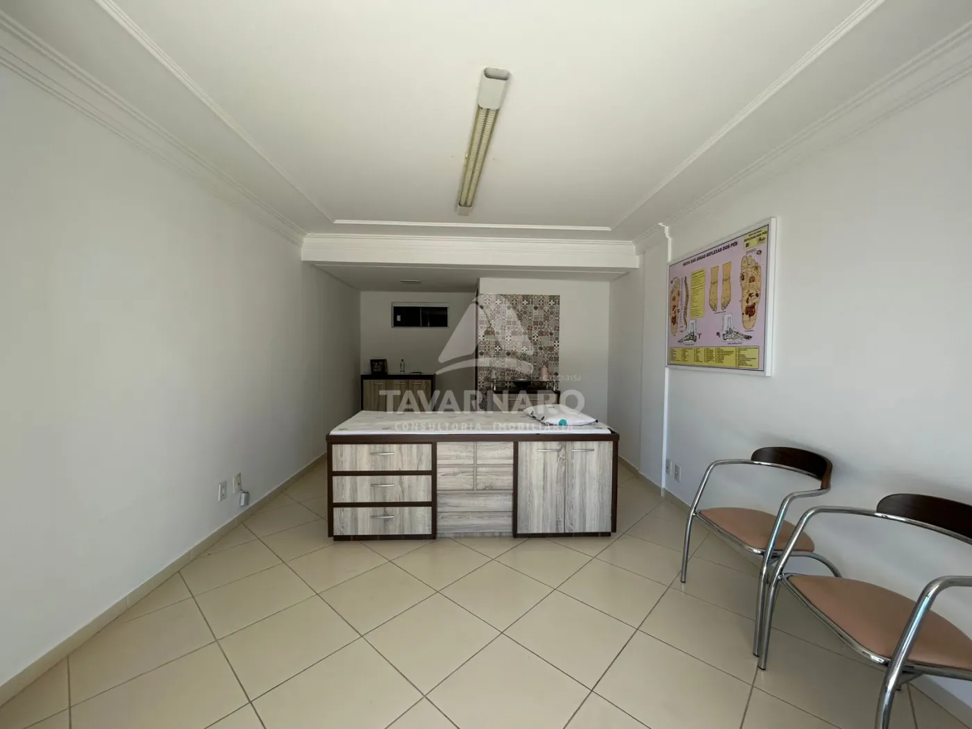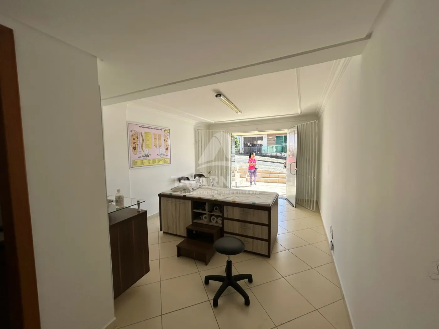 Sala comercial no Centro, medindo 27m² 1 lavabo, bem iluminada e arejada, equipada com maca e balcão.