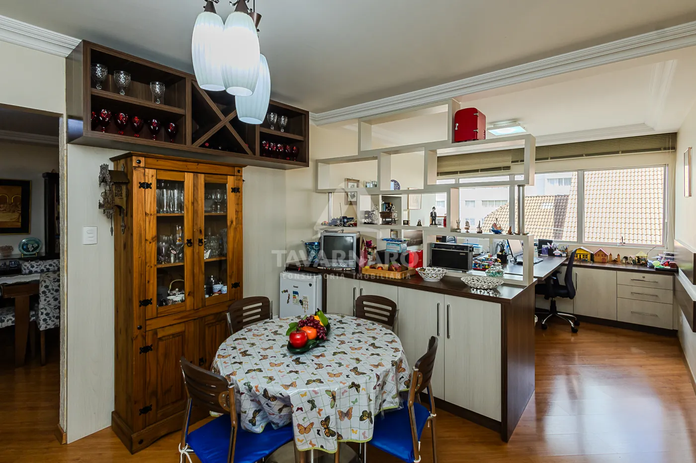 itens que ficam no imóvel: sala: painel, armário embutidos, lustres; escritório: armário aéreo e armários planejados; cozinha: planejados, fogão cooktop e forno; lavanderia: planejados, varal, armários de aço no depósito; quarto 1: roupeiro e painel; suíte: roupeiro, painel, cabeceira e criados-mudos; banheiros: armários com tampos em pedra.