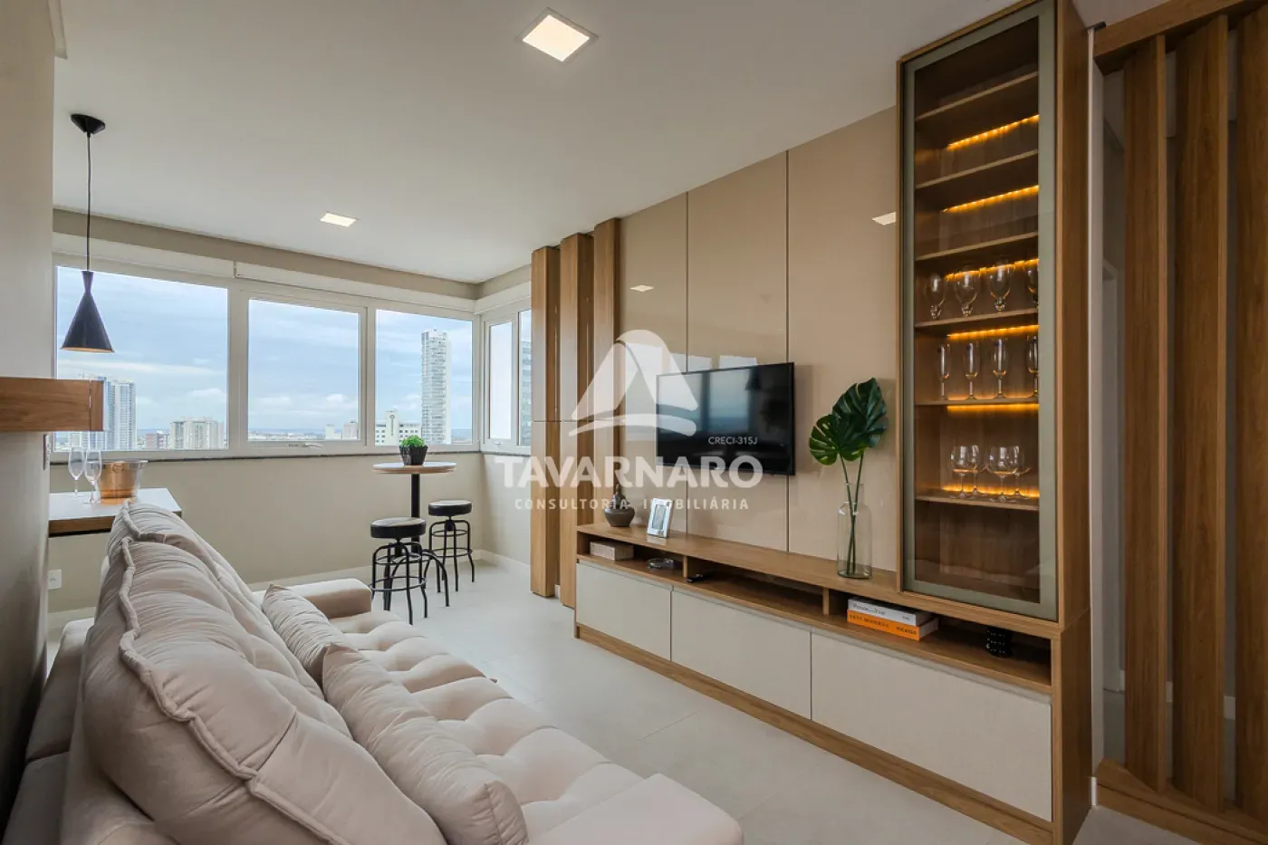 Apartamento Mobiliado, contanto 01 dormitório, ampla sala de estar/jantar com churrasqueira, cozinha com área de serviço conjugada, contém 01 vaga de garagem.