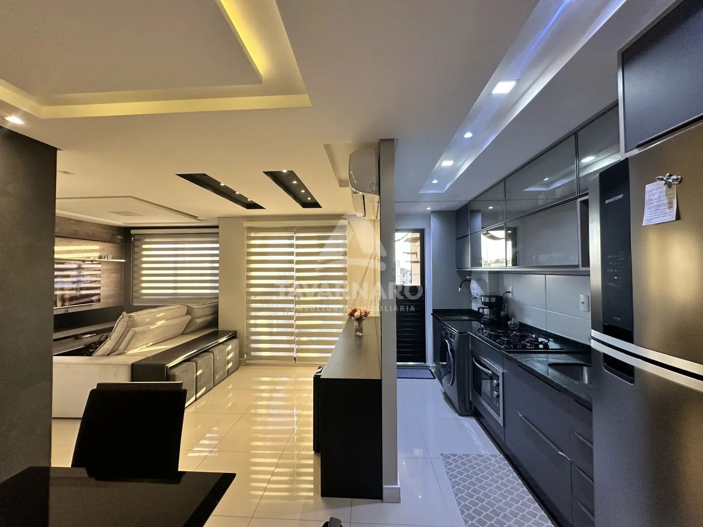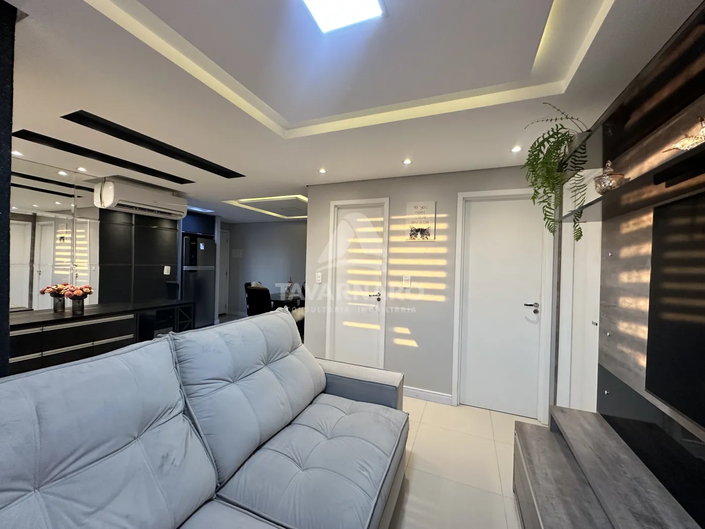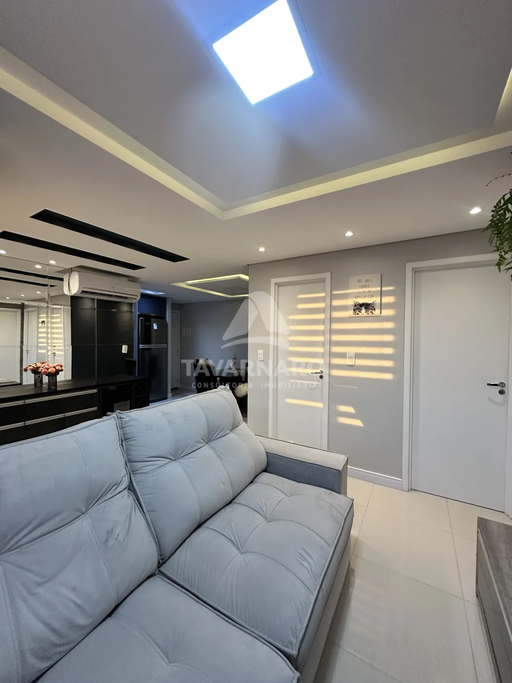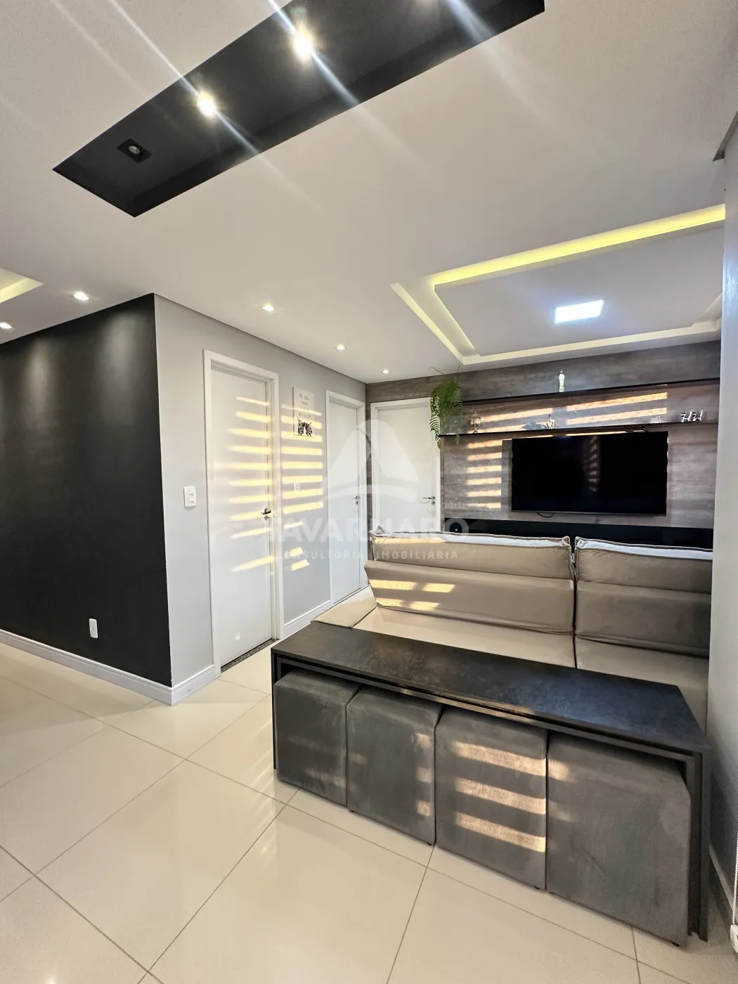 Localizado no último andar do Vista Oficinas, este apartamento foi originalmente projetado com 3 quartos, mas passou por uma reforma inteligente que ampliou a sala, criando um ambiente de convivência muito mais espaçoso e aconchegante.