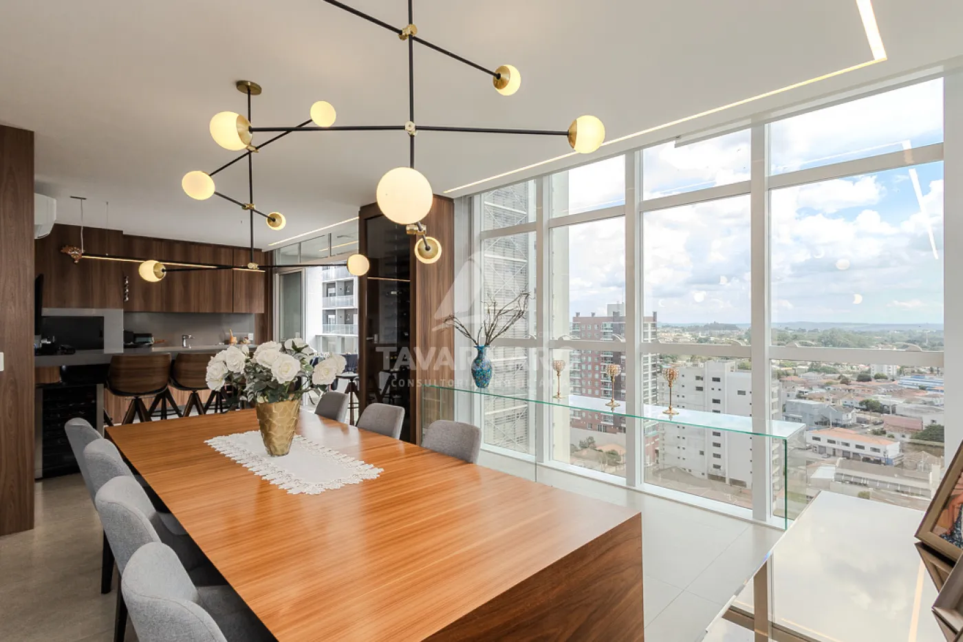 Entre os diferenciais do imóvel, destacam-se sua completa mobília, decoração e equipamentos de alto padrão, garantindo uma experiência sofisticada desde o primeiro dia. Todas as dependências possuem sacadas, proporcionando uma excelente iluminação natural e uma vista panorâmica deslumbrante da cidade. Sua posição privilegiada, voltada para o norte, assegura uma excelente incidência de luz solar ao longo do dia.
