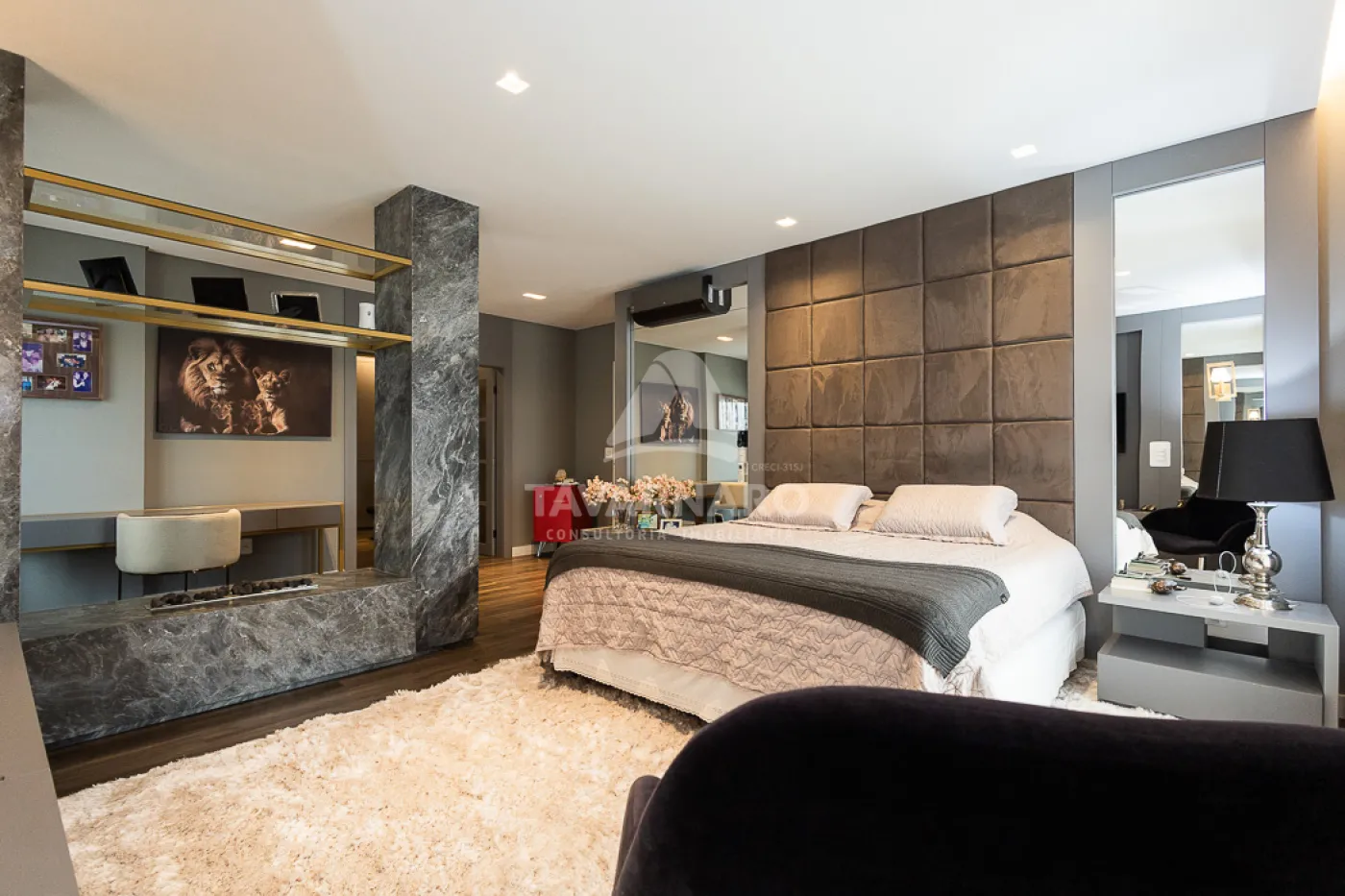 O apartamento dispõe de três suítes amplas, sendo a suíte master um verdadeiro espetáculo à parte, com detalhes que elevam o conforto e a sofisticação.