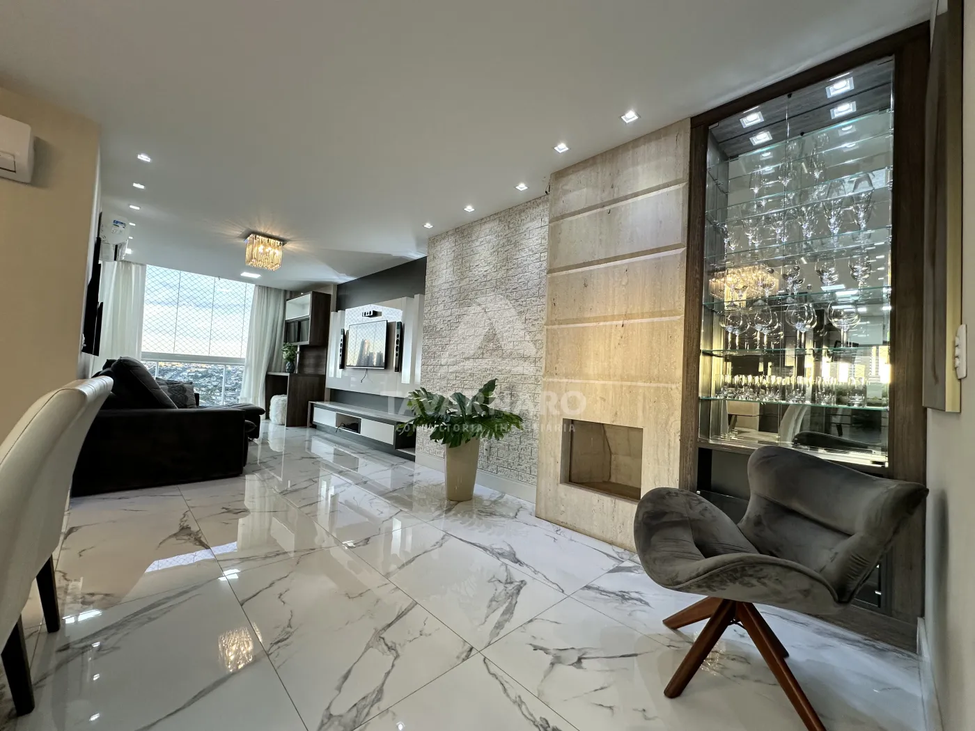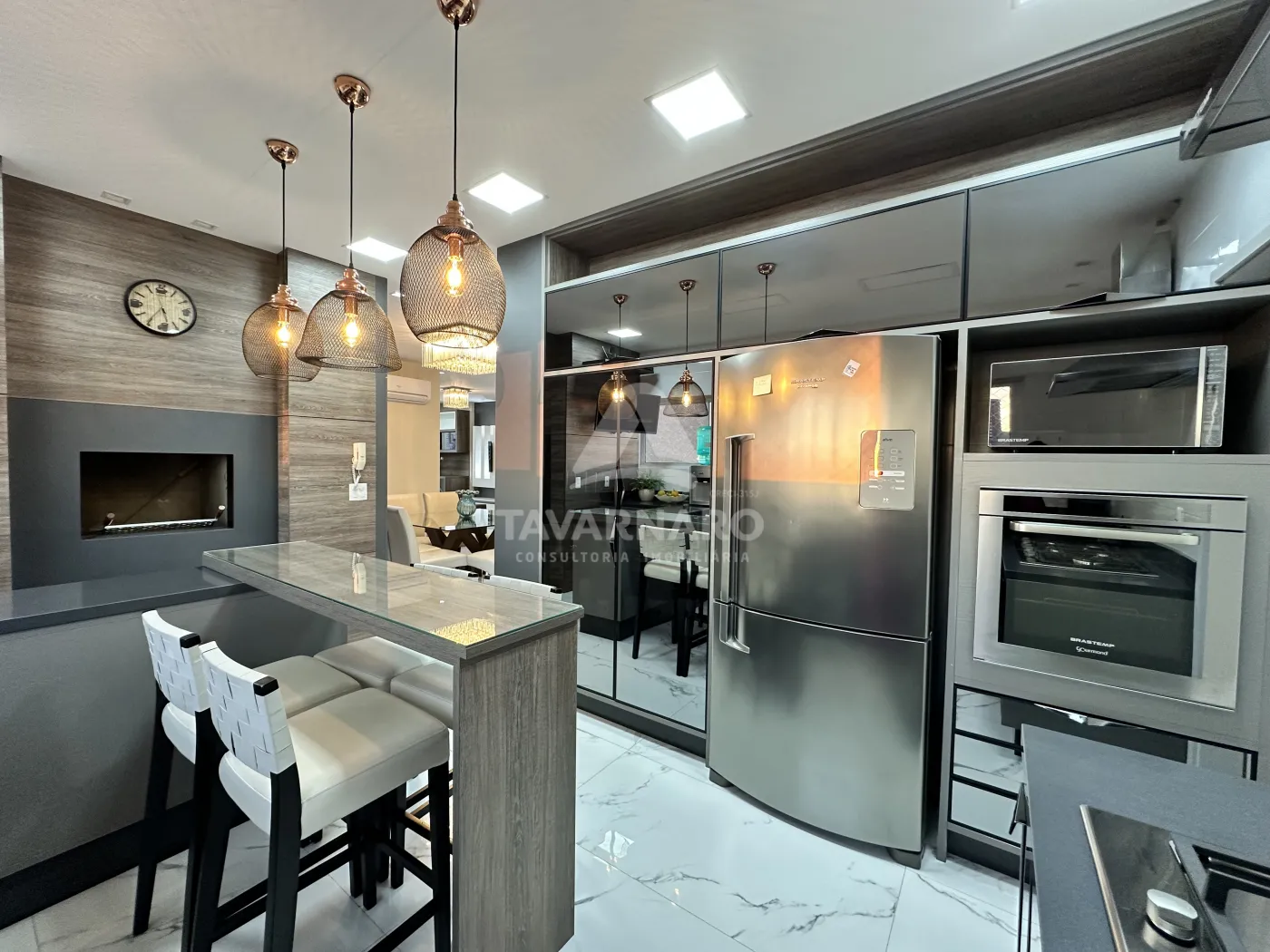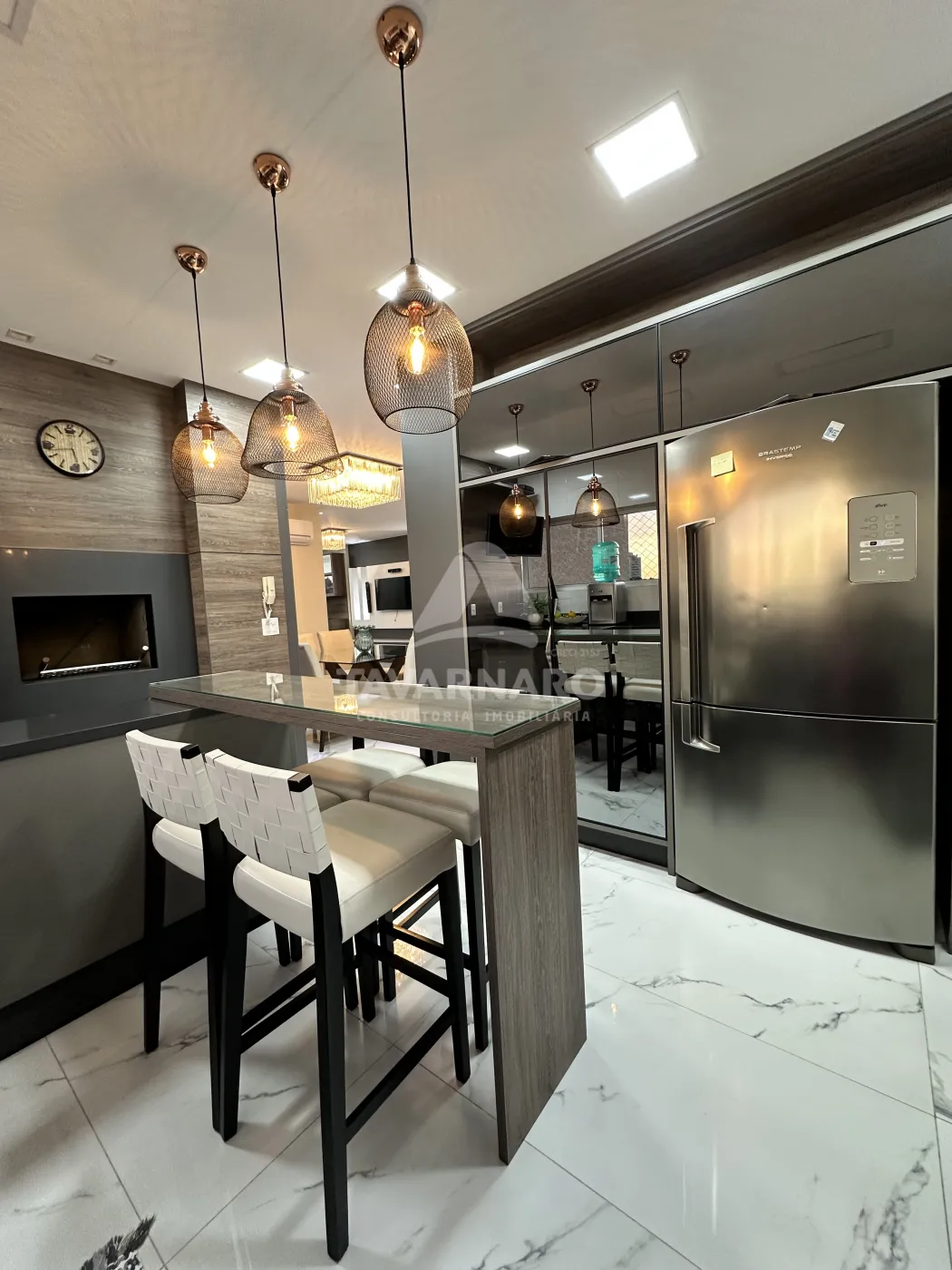 São 3 dormitórios, sendo 1 suíte, além de uma sala ampla com lareira, ideal para receber e viver com conforto. Conta também com copa com lavabo, cozinha com armários planejados, lavanderia com armários, churrasqueira, dependência de empregada e sacada frontal.
