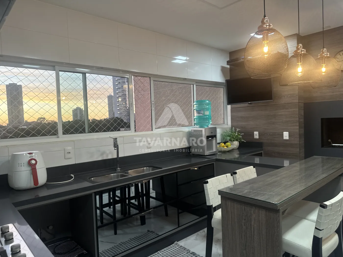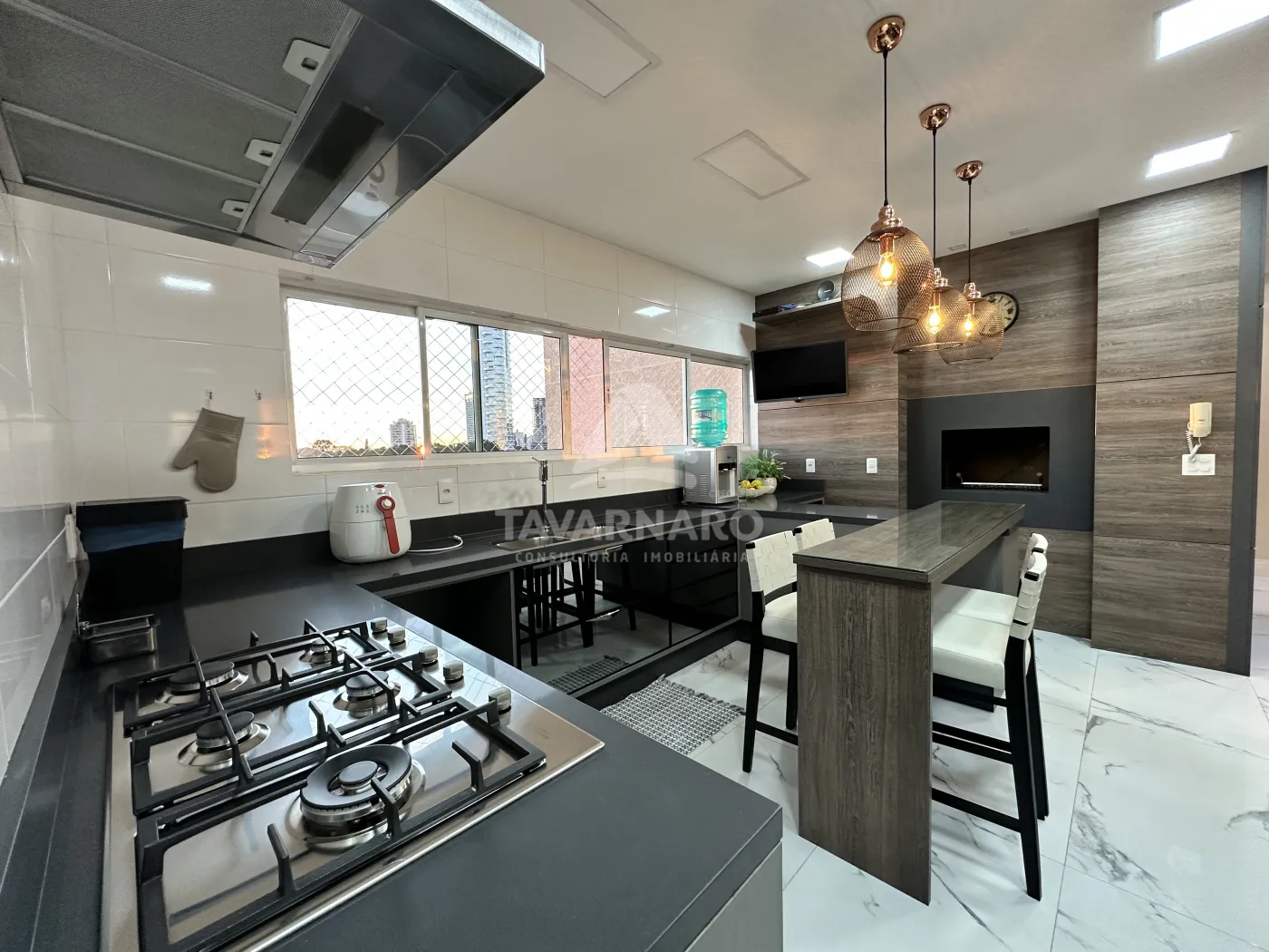 Salão de festas com espaço gourmet