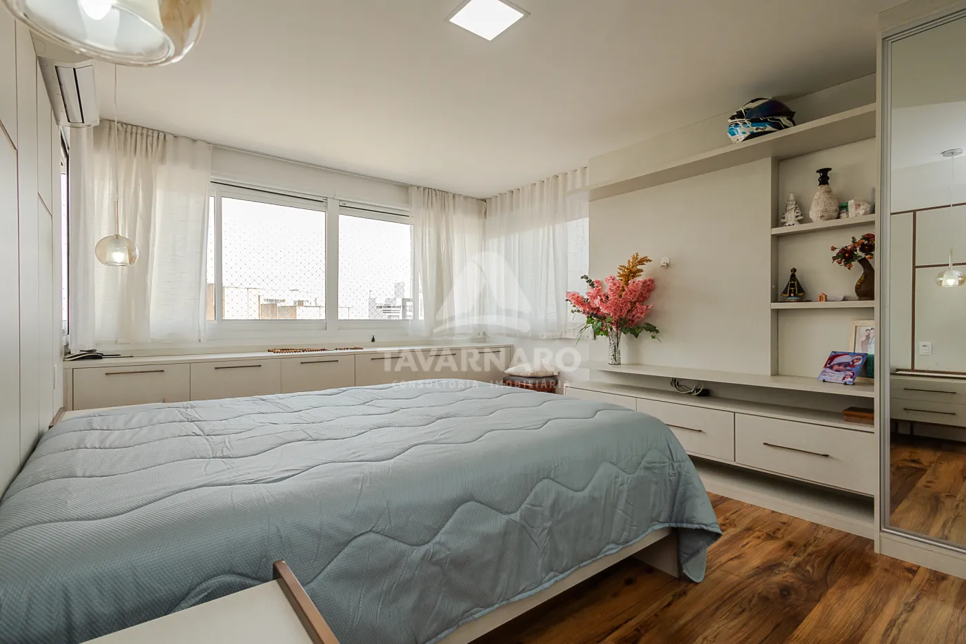 Os dormitórios são aconchegantes e bem iluminados, garantindo uma boa noite de sono. A suíte é ainda mais especial, com um banheiro privativo