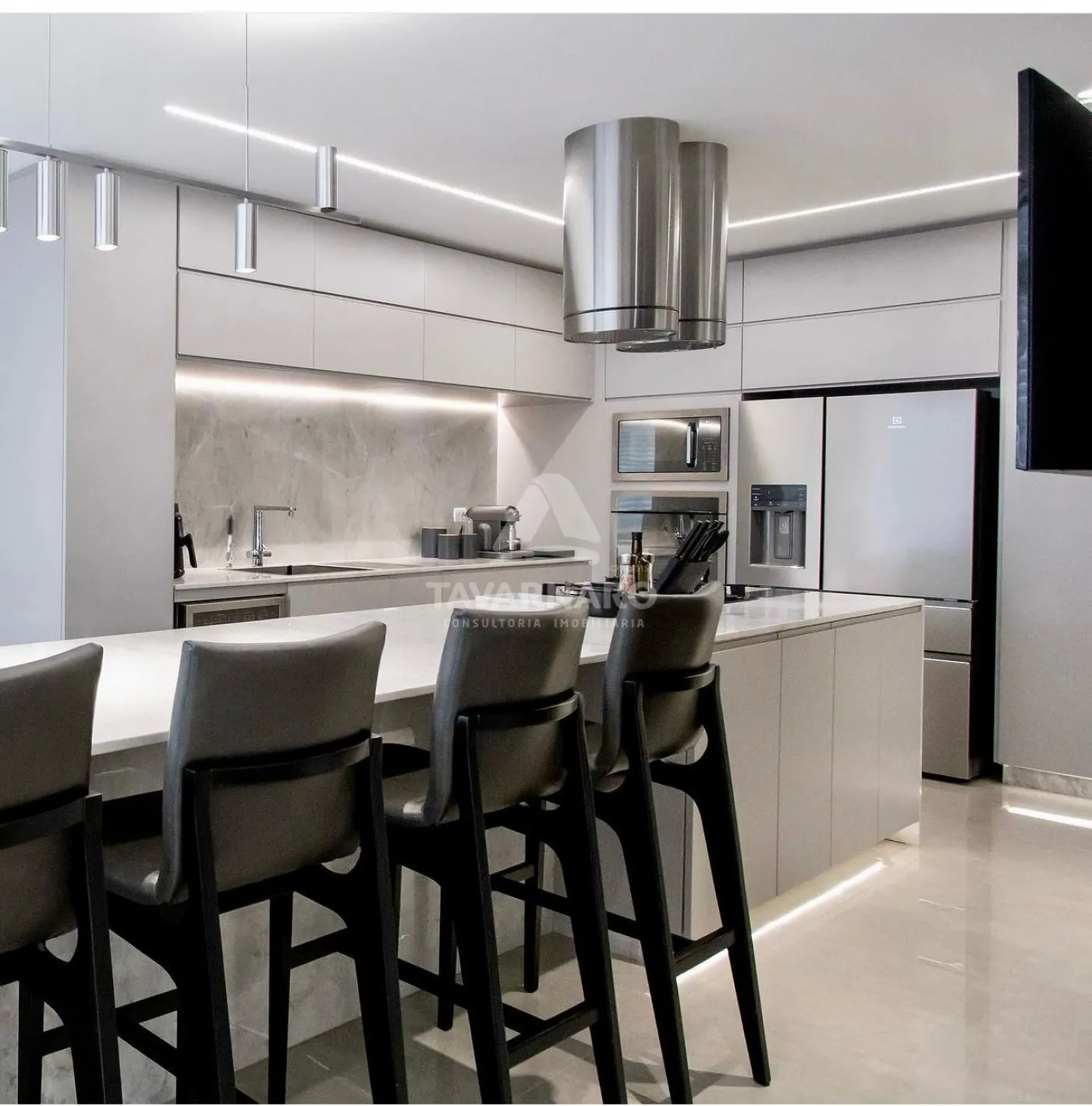 Móveis planejados da Simonetto, todo planejado com detalhes em laca, mármore branco Paraná