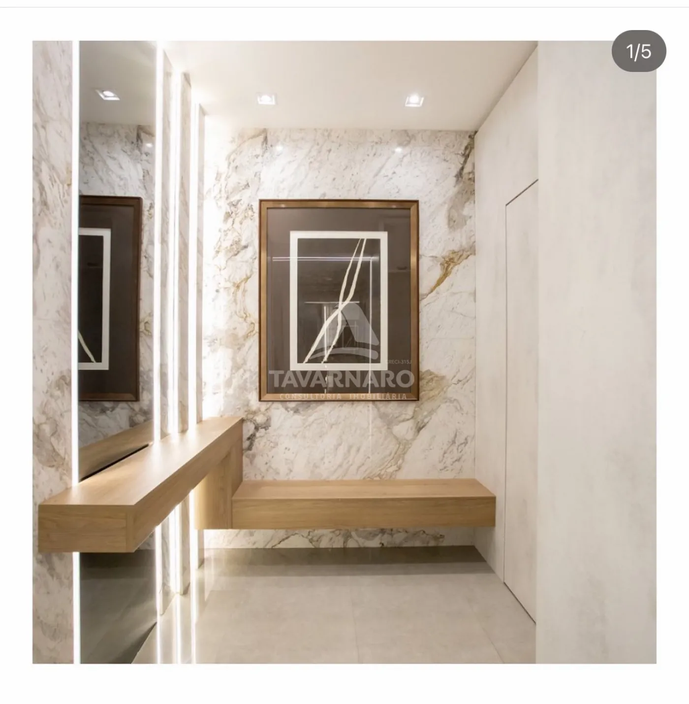 Elevador privativo com Hall de entrada e detalhes em mármore Branco Paraná.