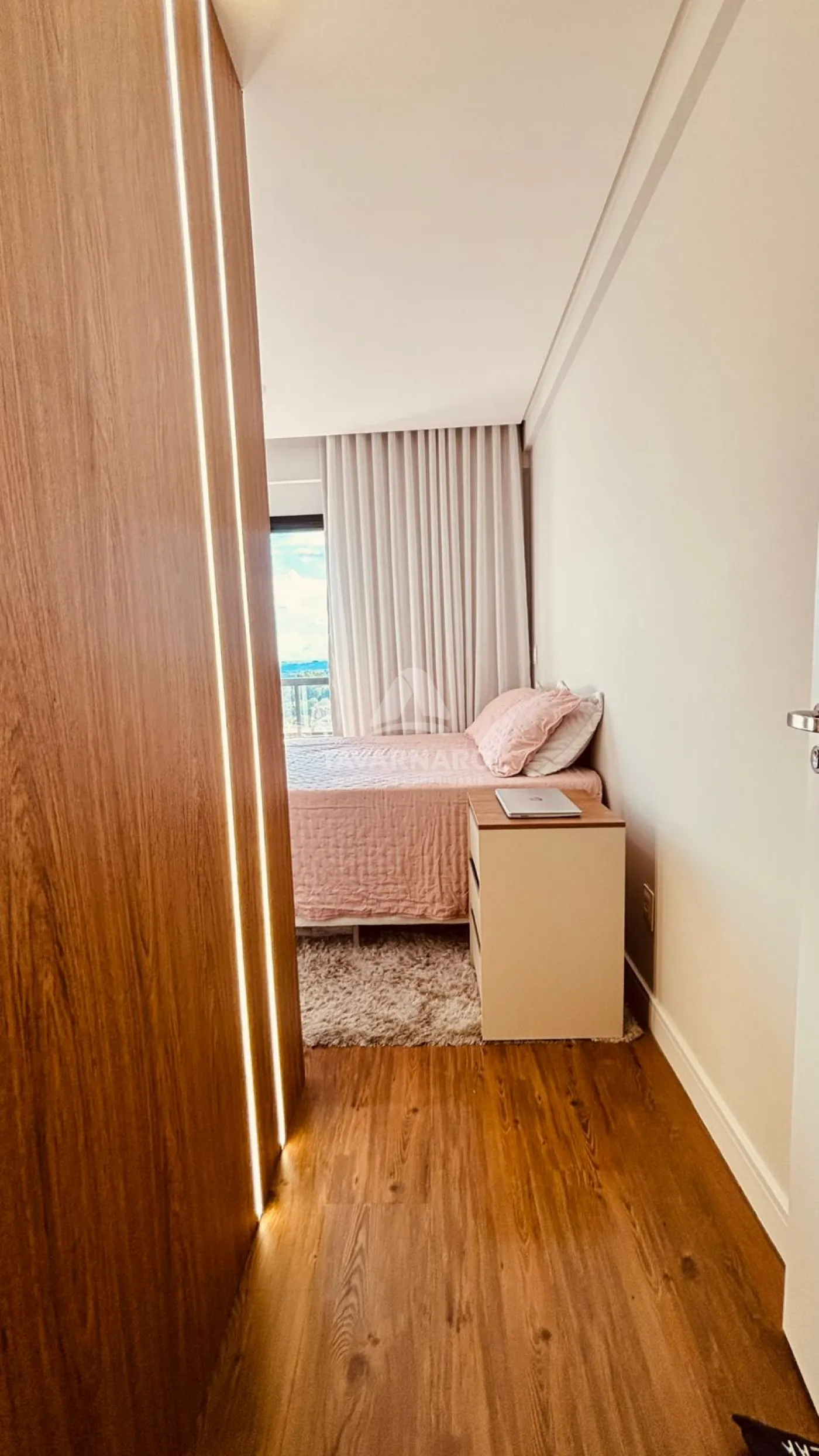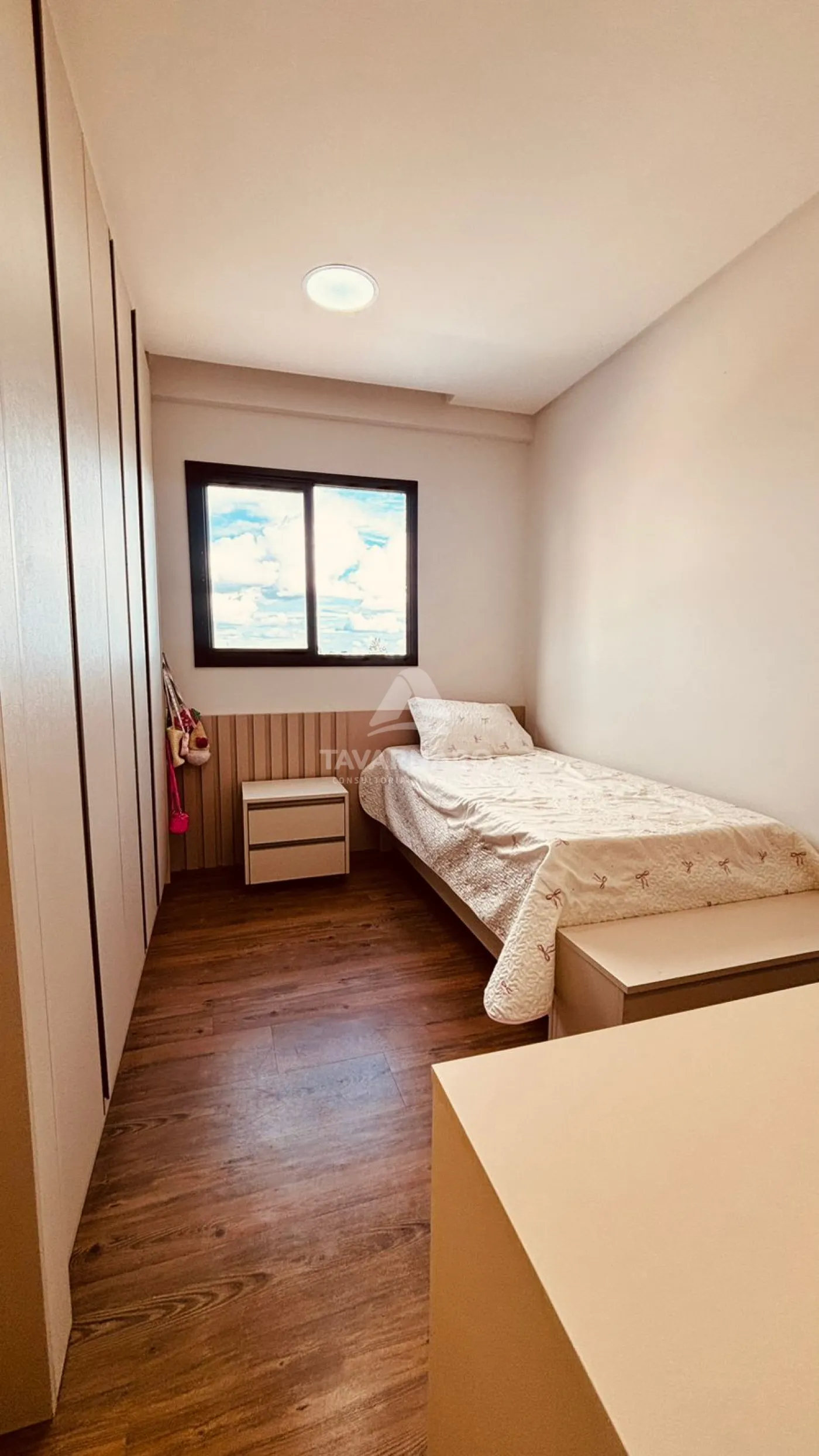 São 2 quartos, sendo 1 suíte com um diferencial especial: sacada privativa, perfeita para começar o dia com tranquilidade ou relaxar no fim da tarde.