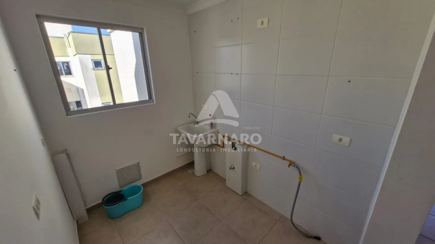 O apartamento, com 55,29m² de área total, possui 03 quartos, sala integrada a cozinha, banheiro, área de serviço e duas vagas de garagem.