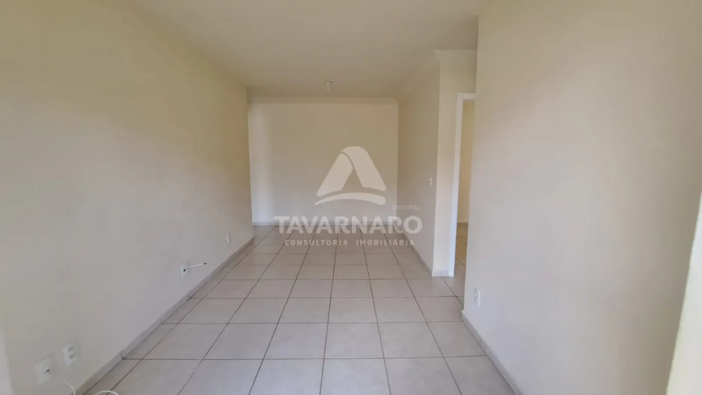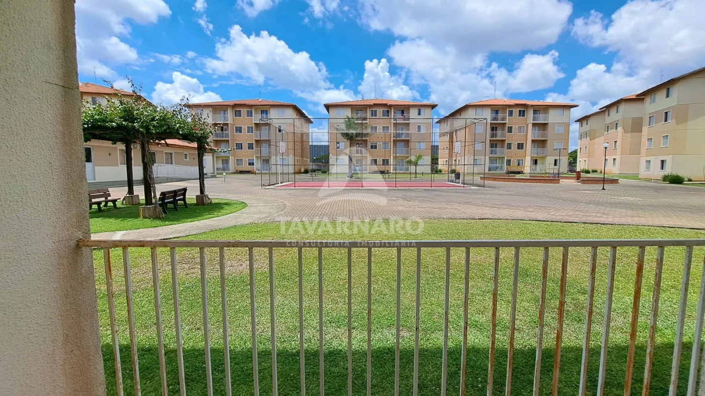 Apto térreo com 2 dormitórios, sala para 2 ambientes com sacada, cozinha com armários, área de serviço, banheiro social e uma vaga de estacionamento.
