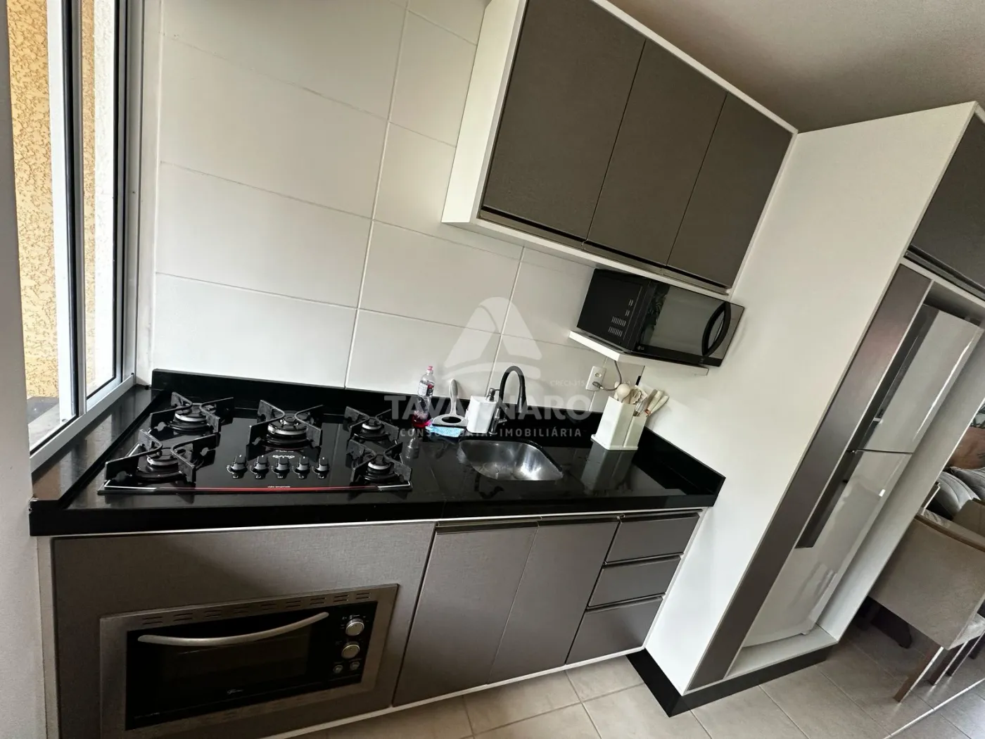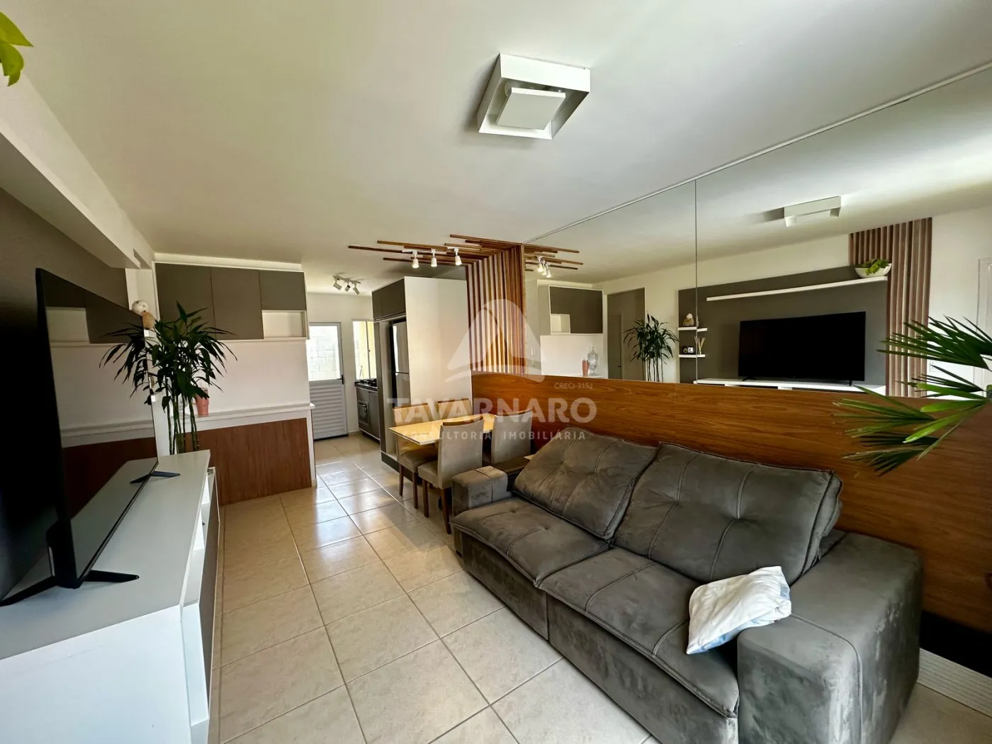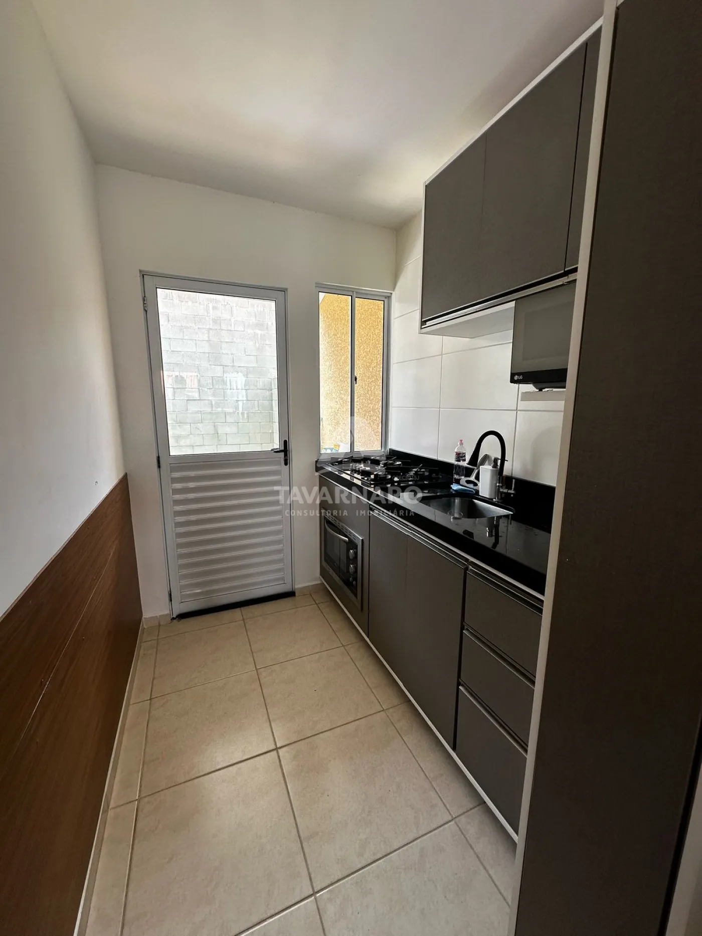 São 3 quartos, sala integrada a cozinha e 1 vaga de estacionamento.