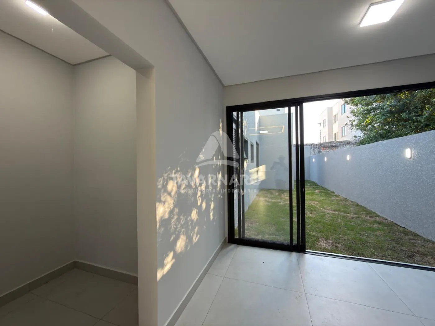 Arquitetura moderna em condomínio fechado.