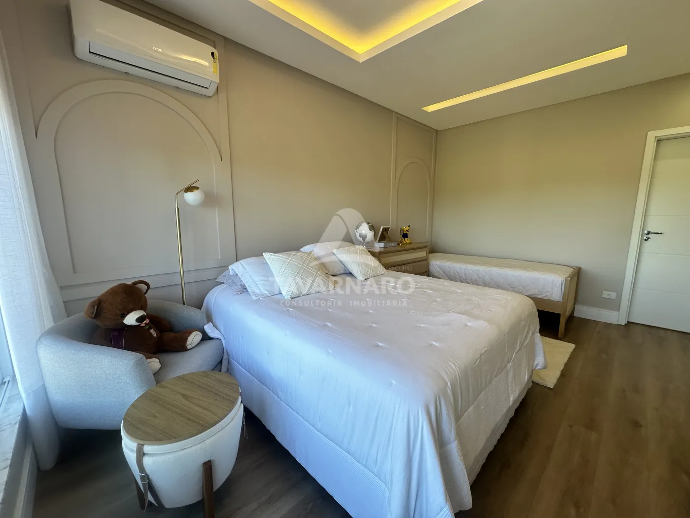 Casa alto padrão com dois pavimentos, com revestimento no térreo com porcelanato 1mx1m, piso superior piso vinílico, finamente acabada, contendo na parte superior: