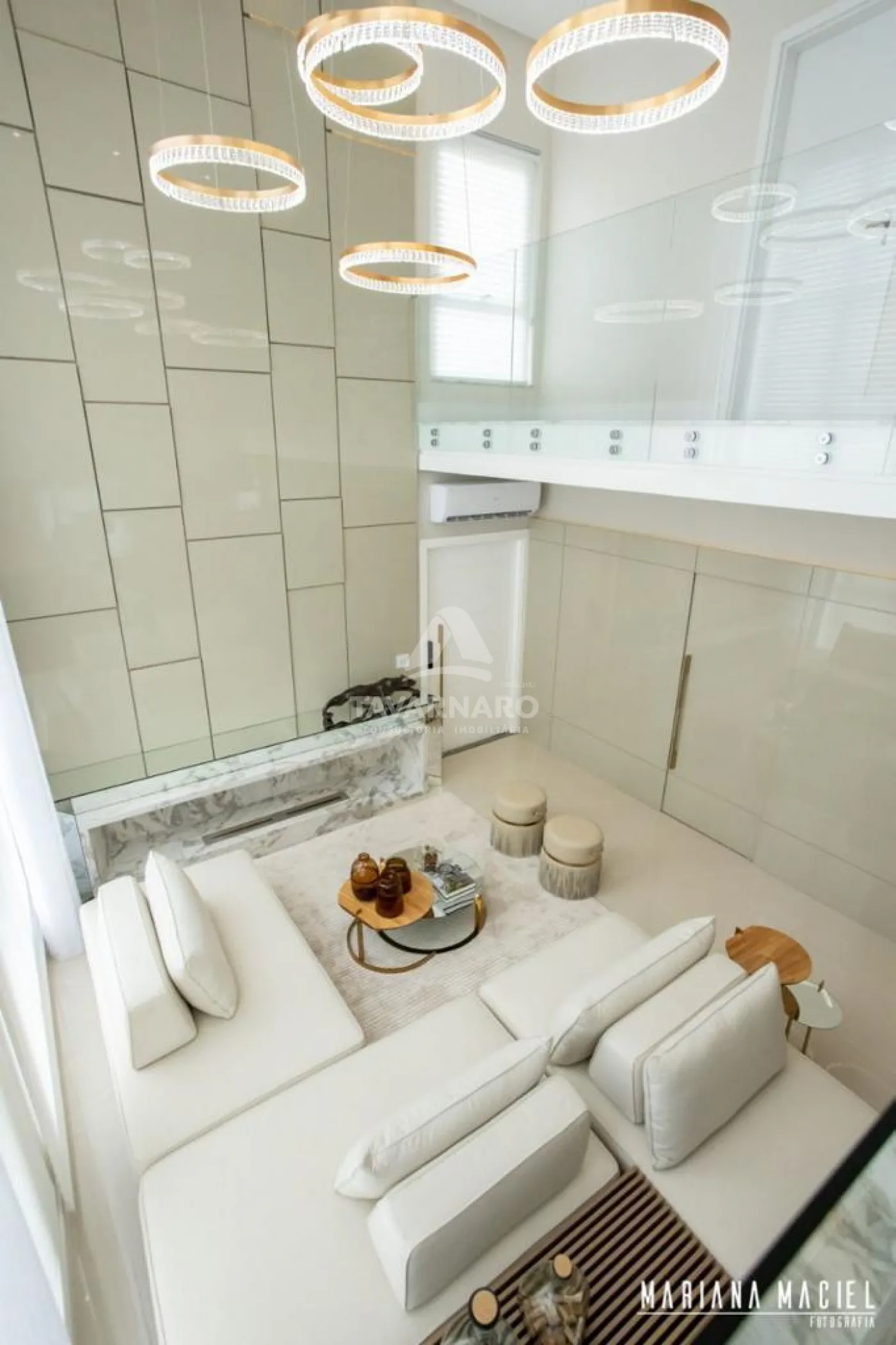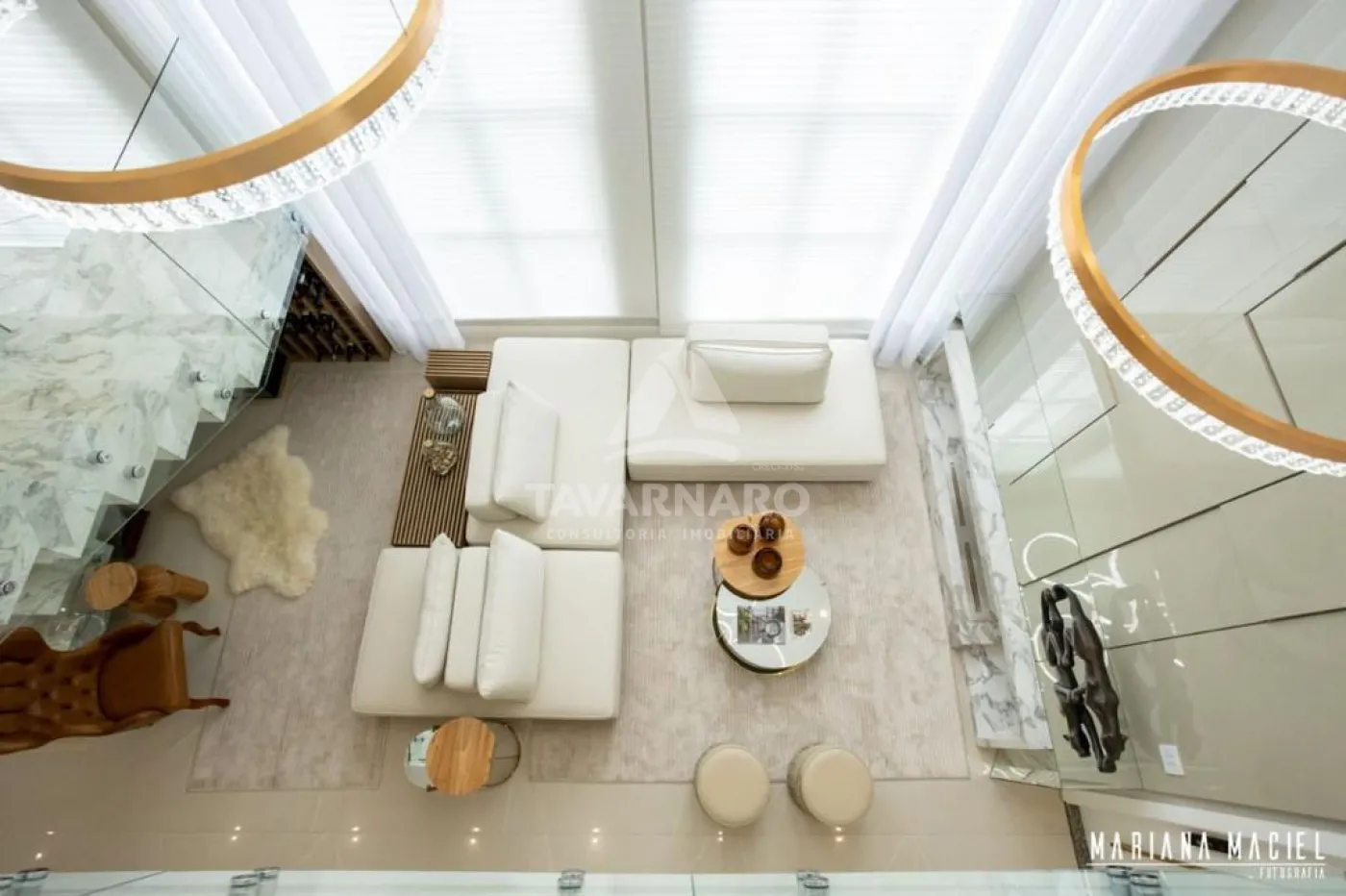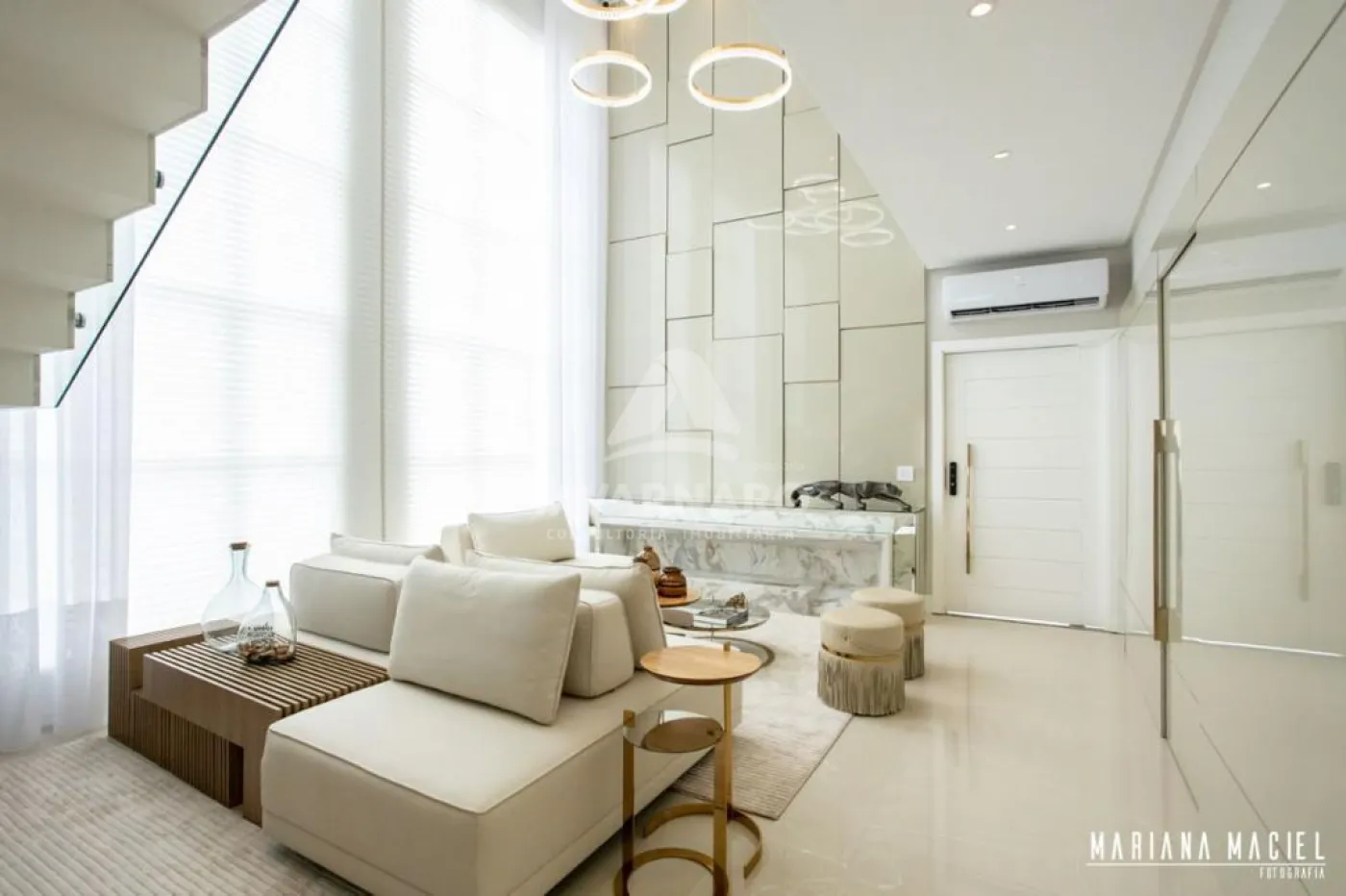 Cortina automatizada na sala do pé direito duplo,