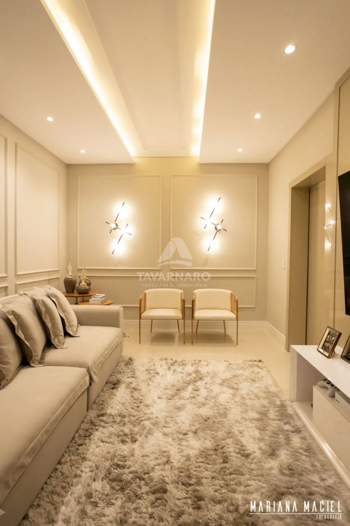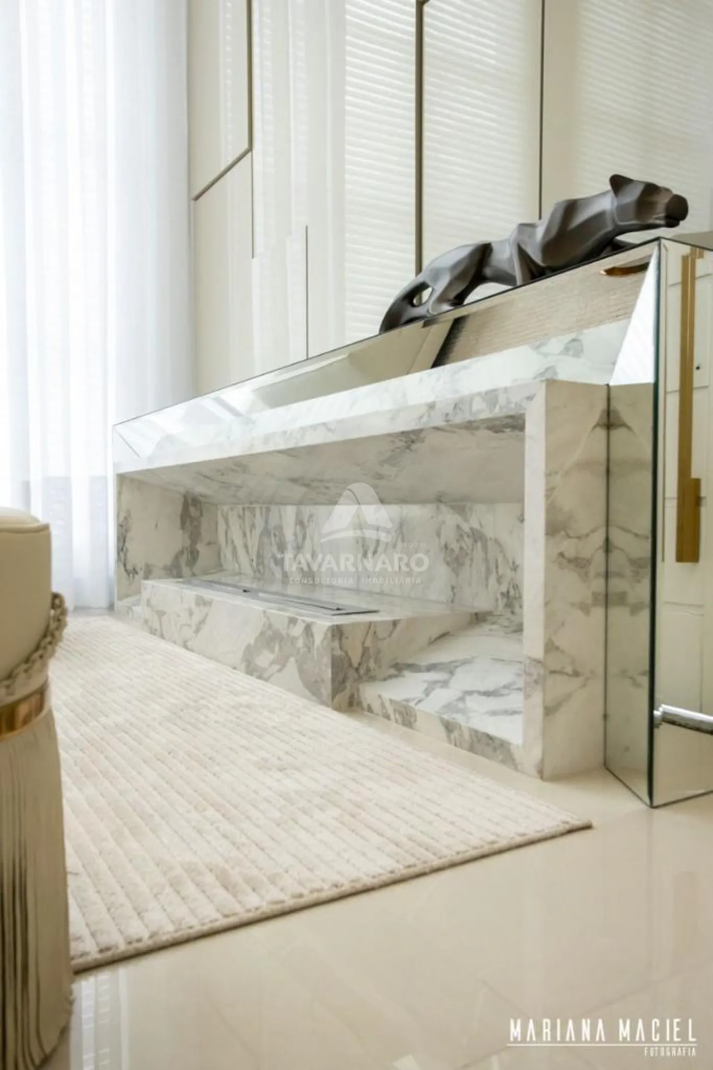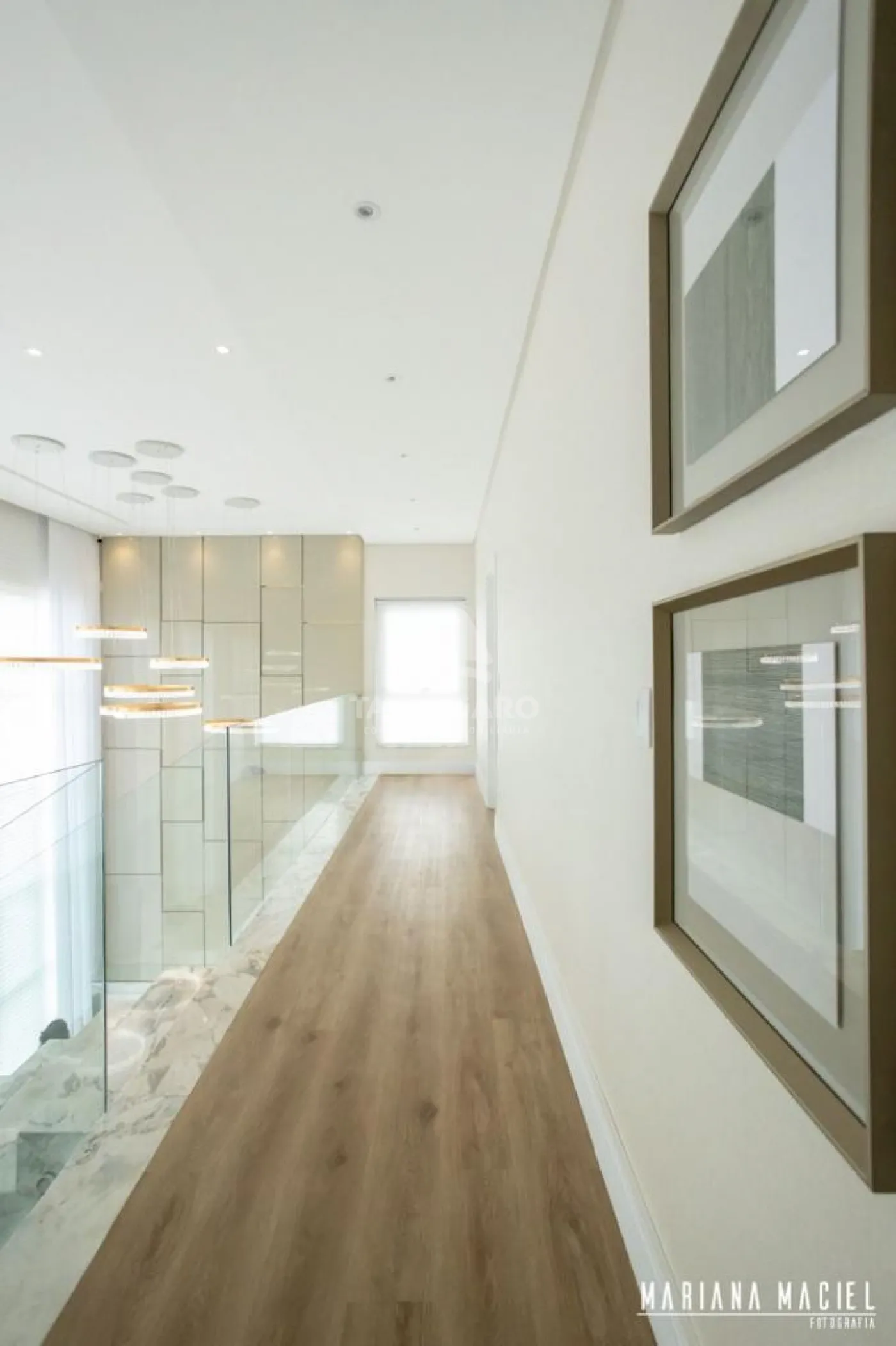 Cortina automatizada na sala do pé direito duplo,
