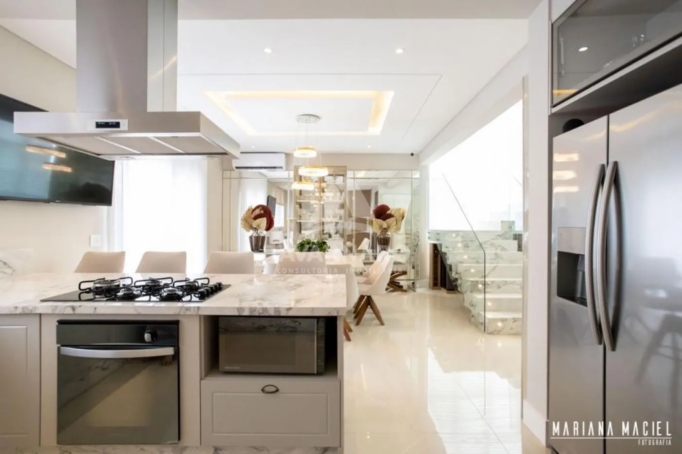 Sala de jantar integrada com cozinha/área gourmet com Churrasqueira,