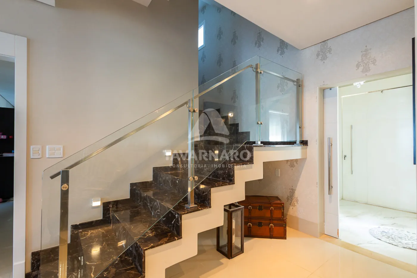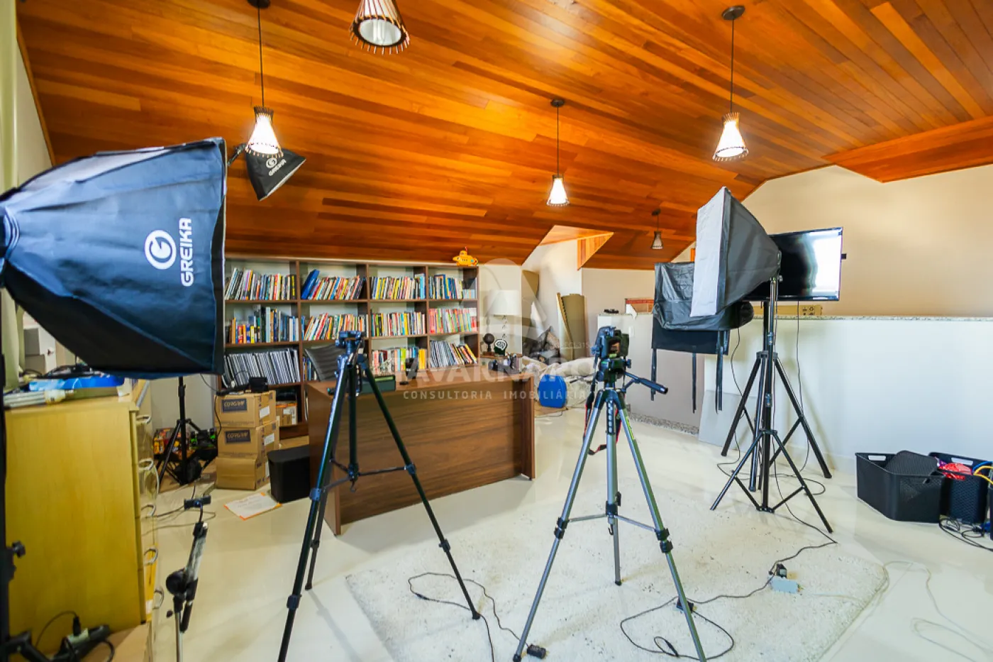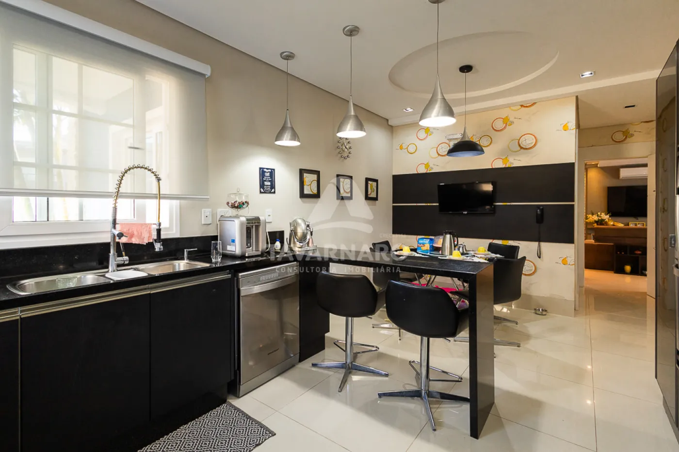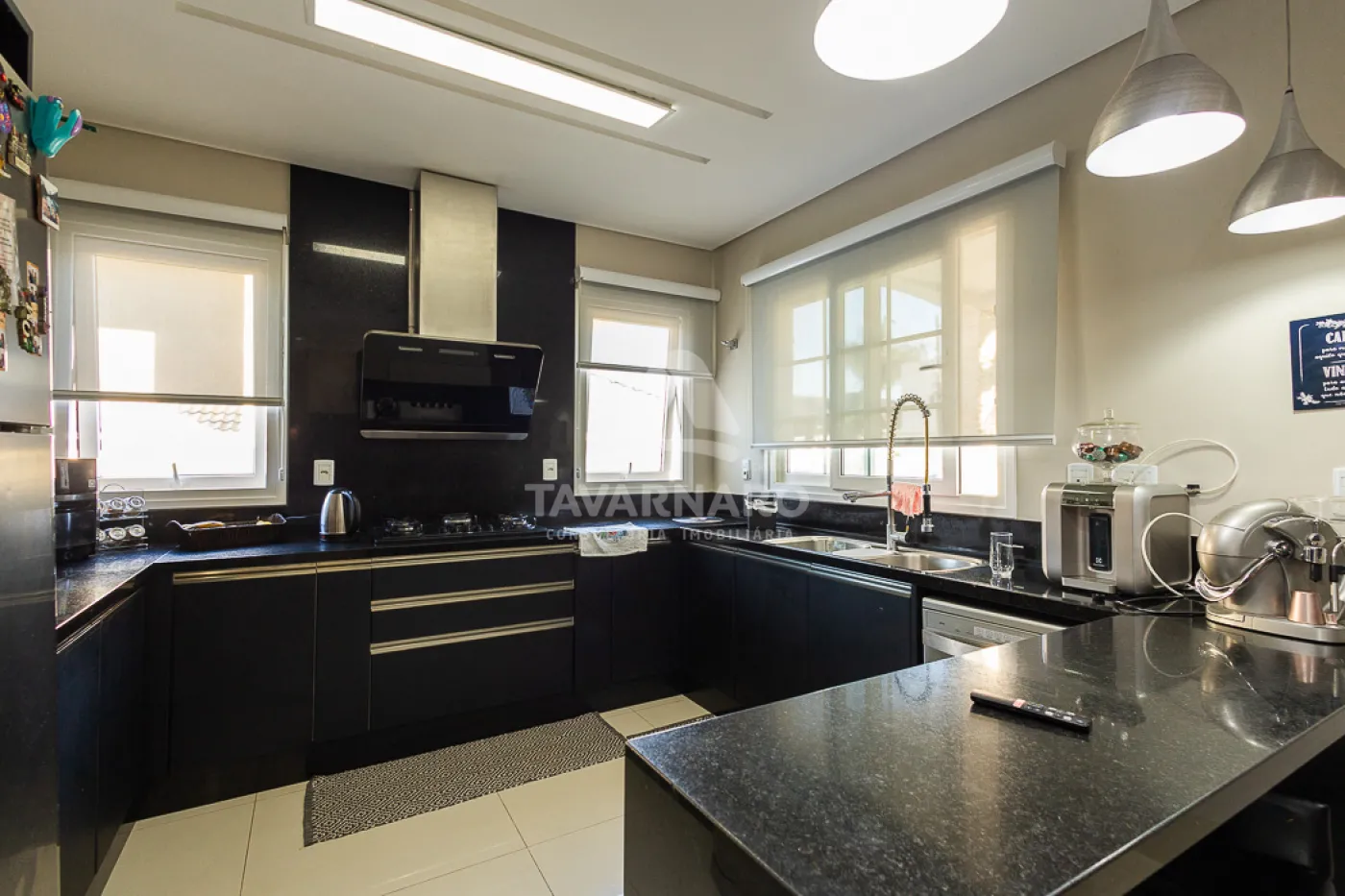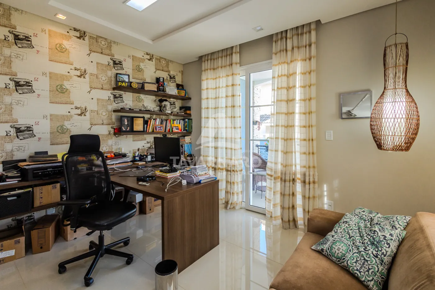 Piso porcelanato alto padrão, portas e janelas em PVC marca WEIKU, com comando elétrico de persianas. Moveis Planejados marca Florense no escritório, cozinha, despensa, churrasqueira