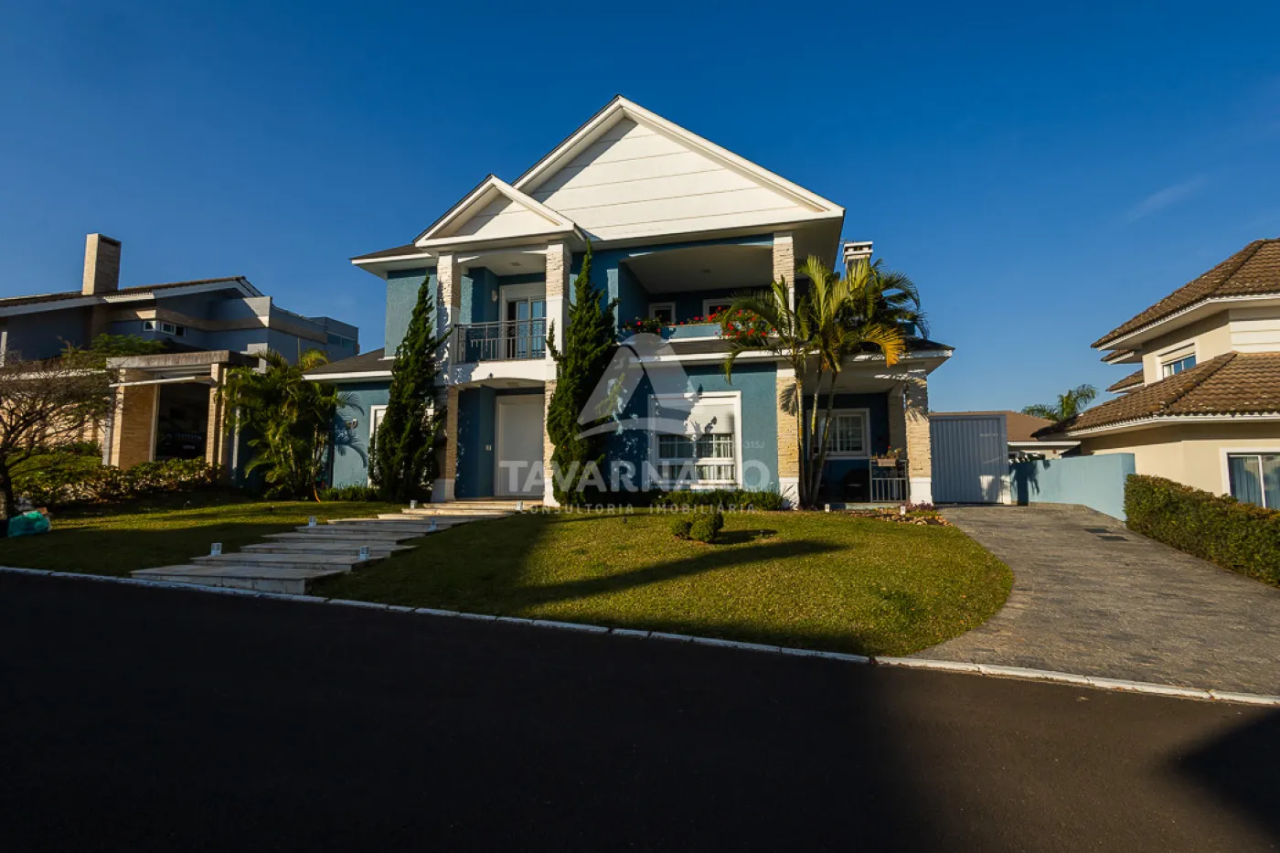 Garagem coberta para dois carros + área interna de manobra para mais 3 carros