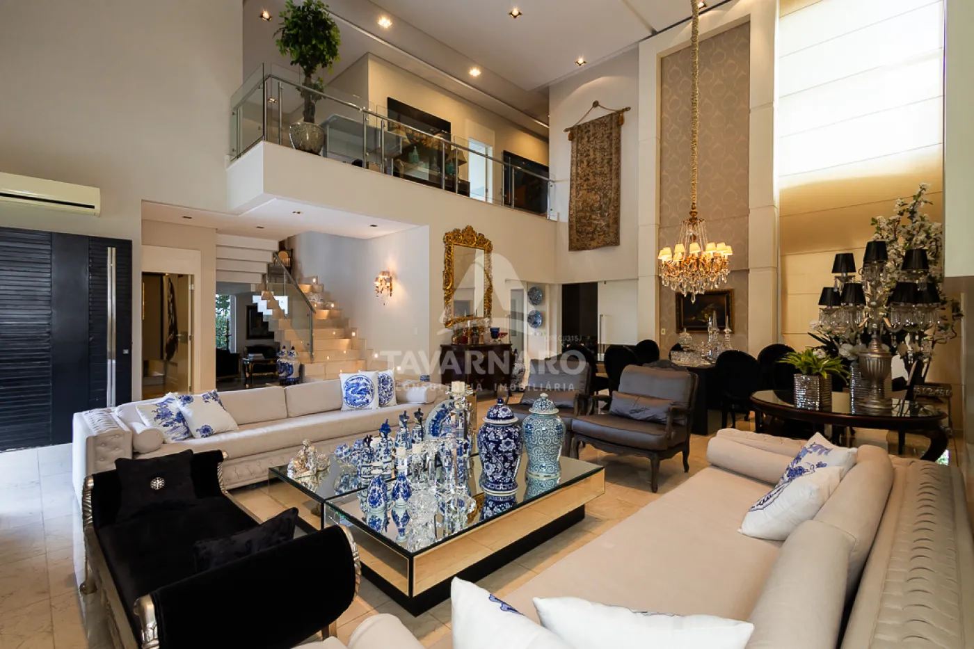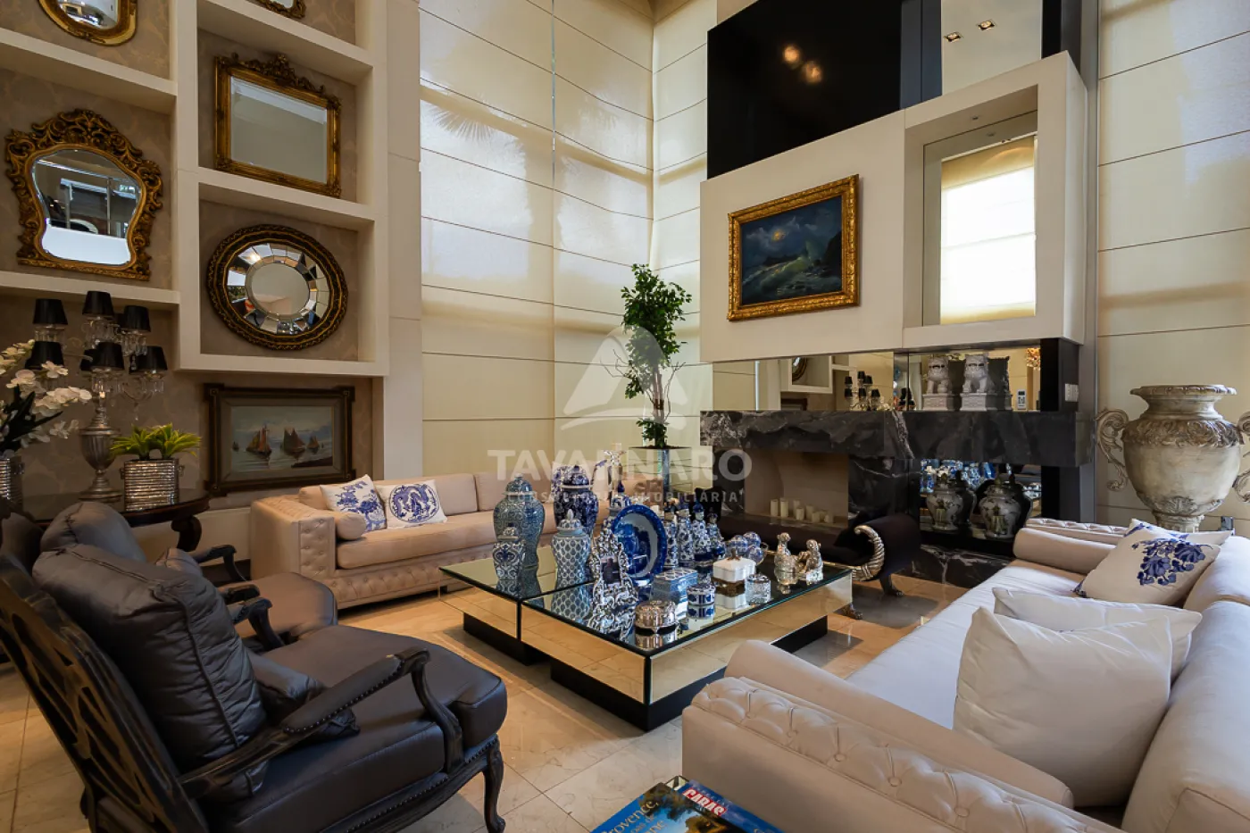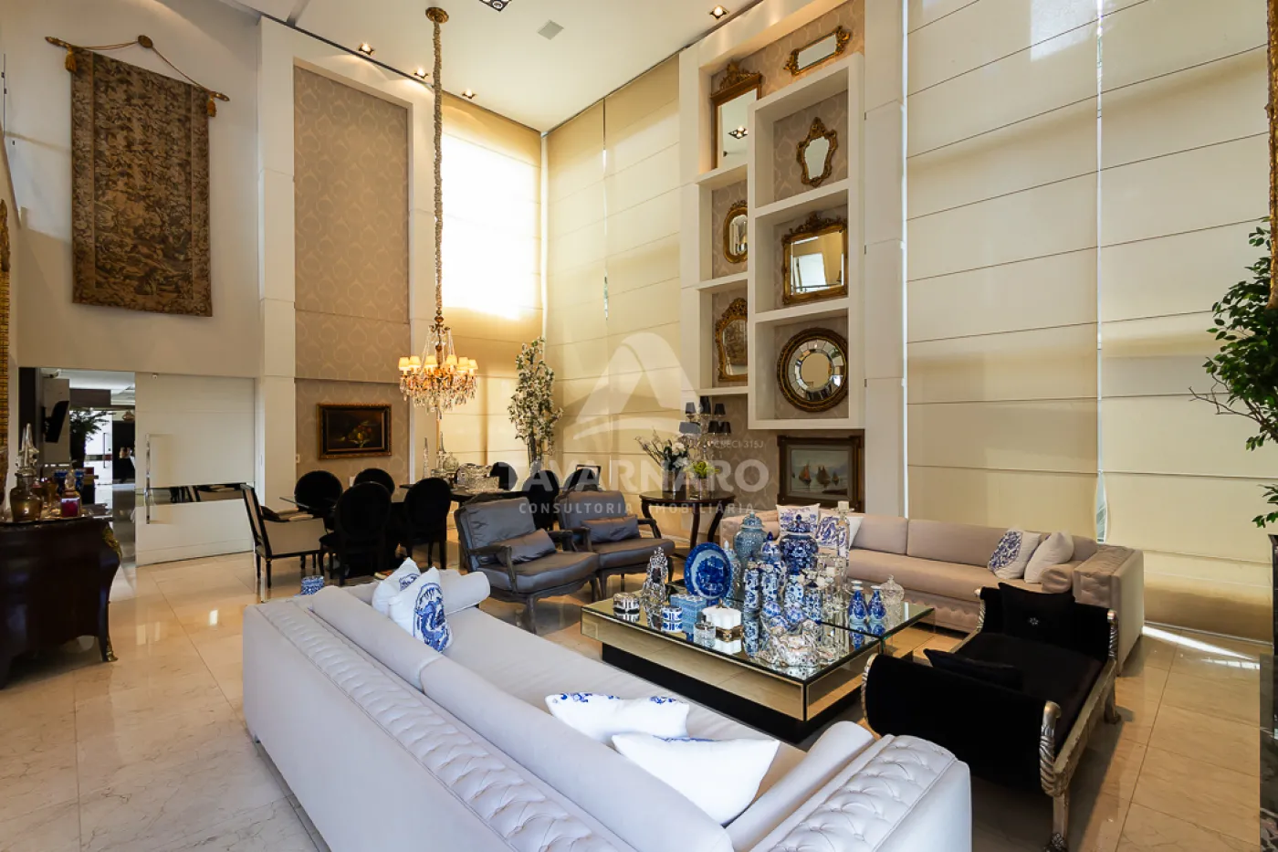 Sala principal com pé-direito de aproximadamente 7,5 metros