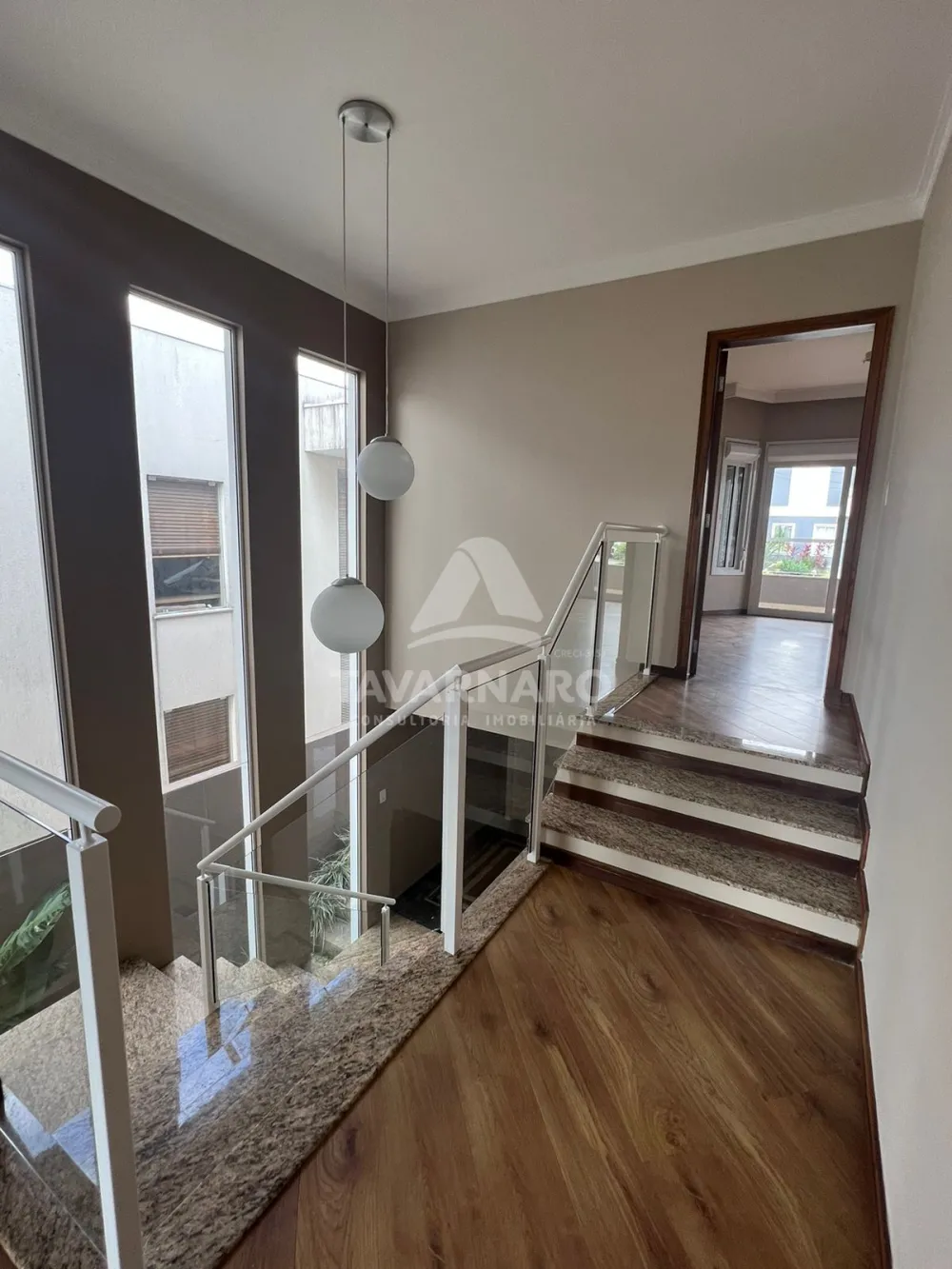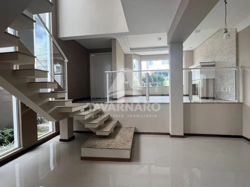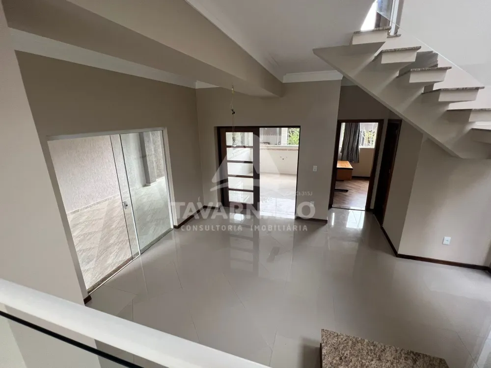 No piso térreo sala de estar com lareira, sala de jantar, escritório, lavabo.