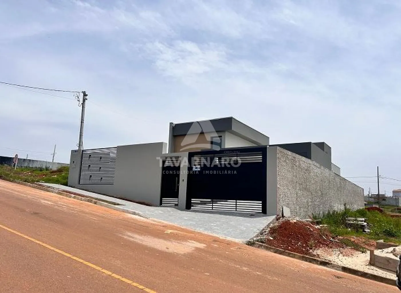 Com 3 quartos, sendo 1 suíte, a casa se destaca pela fachada minimalista, portão e gradil imponentes, transmitindo elegância e segurança.