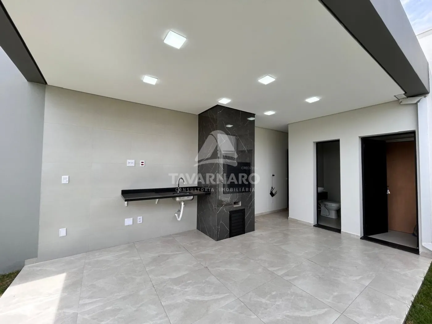 A área gourmet é integrada e funcional, com churrasqueira e bancada em acabamento preto, perfeita para receber amigos e família.