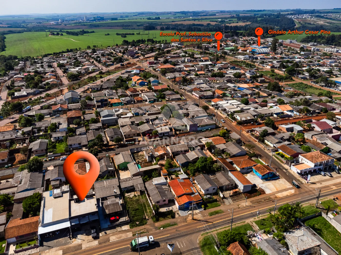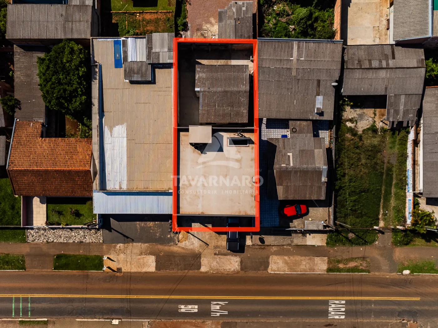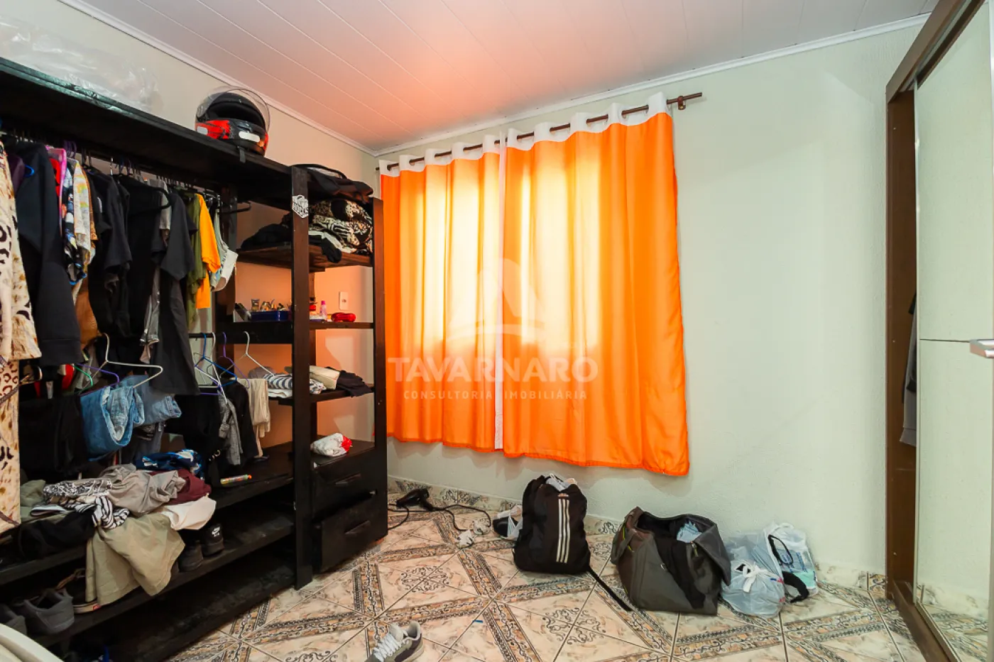 Ao fundo, uma casa em alvenaria com forro em madeira e PVC com 2 quartos, sala, cozinha e banheiro com pouca sobra de terreno.