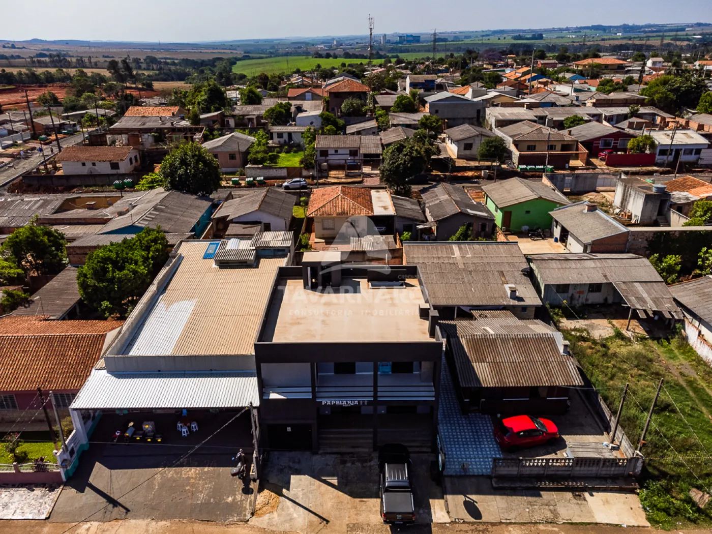 No piso inferior são 2 salas comerciais com 1 banheiro cada e 3 vagas de estacionamento.