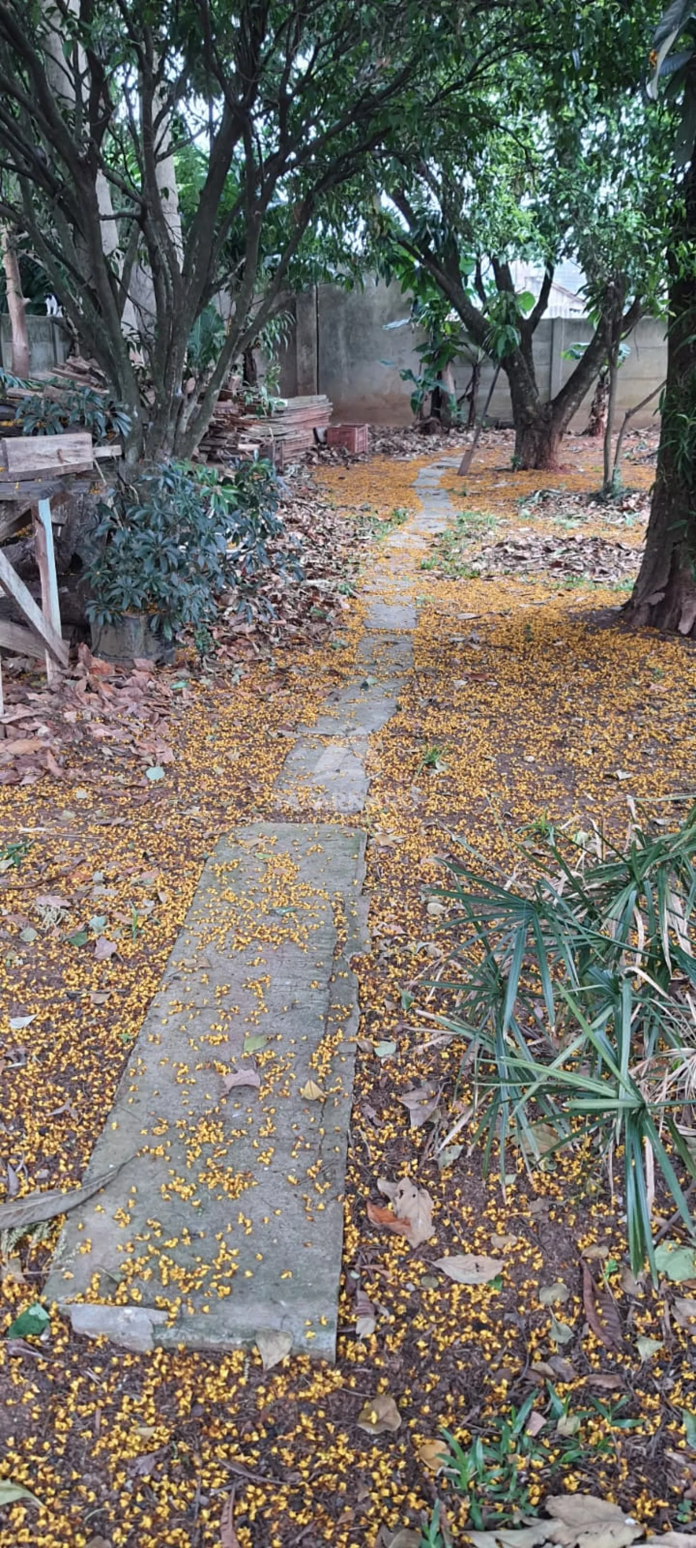 No meio do terreno existe uma edícula não acabada, com sala-copa-cozinha, concreto aberto e uma suíte.