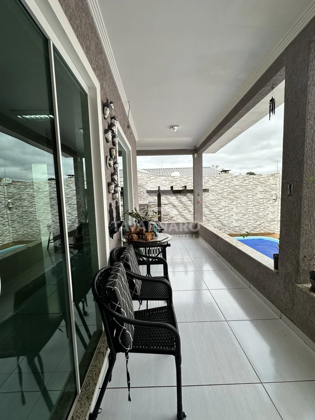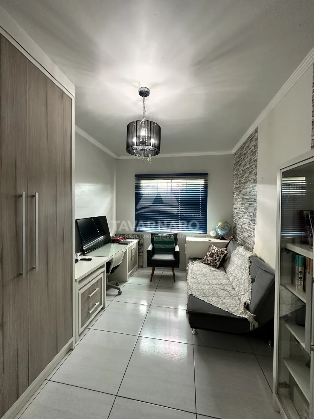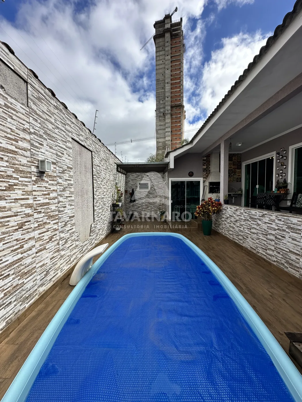 Casa semimobiliada com três quartos sendo uma suíte, escritório com lavabo, área gourmet e piscina, contendo uma edícula.
