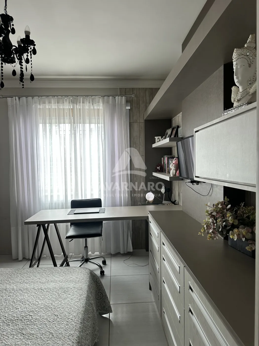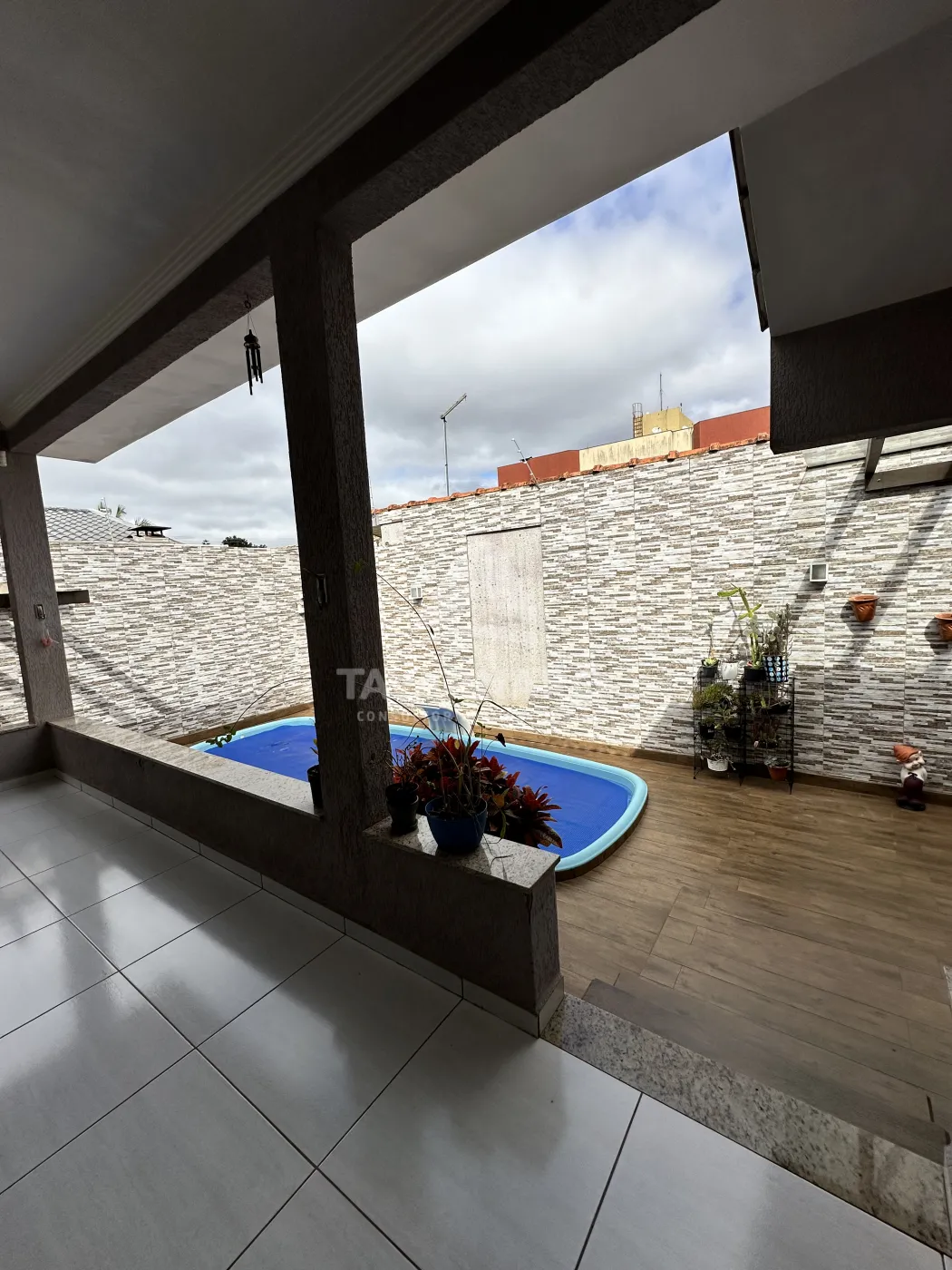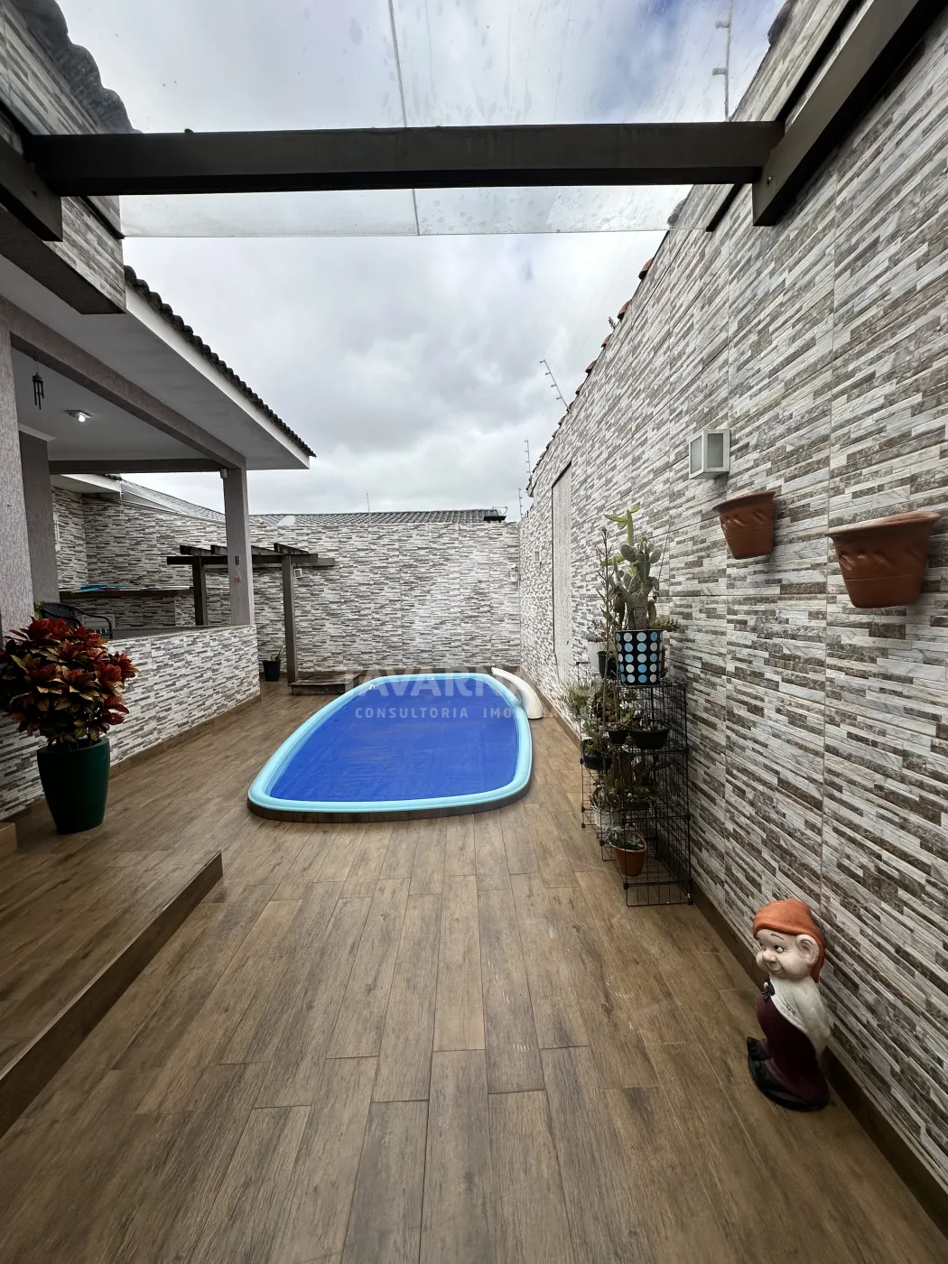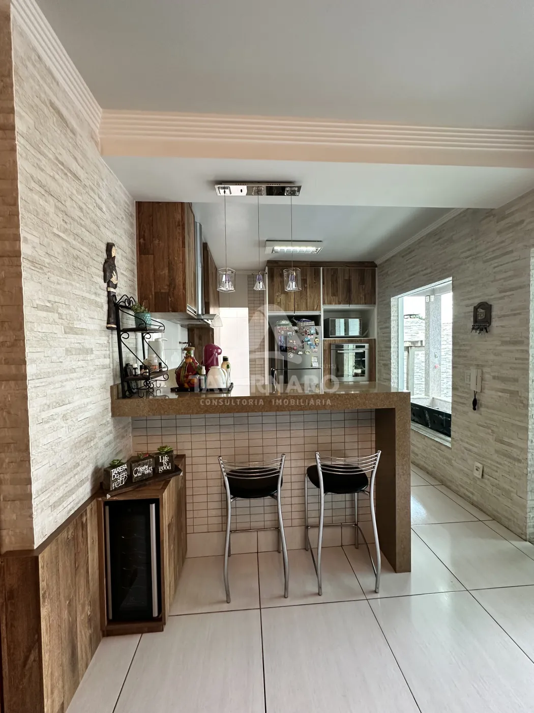 Casa semimobiliada com três quartos sendo uma suíte, escritório com lavabo, área gourmet e piscina, contendo uma edícula.