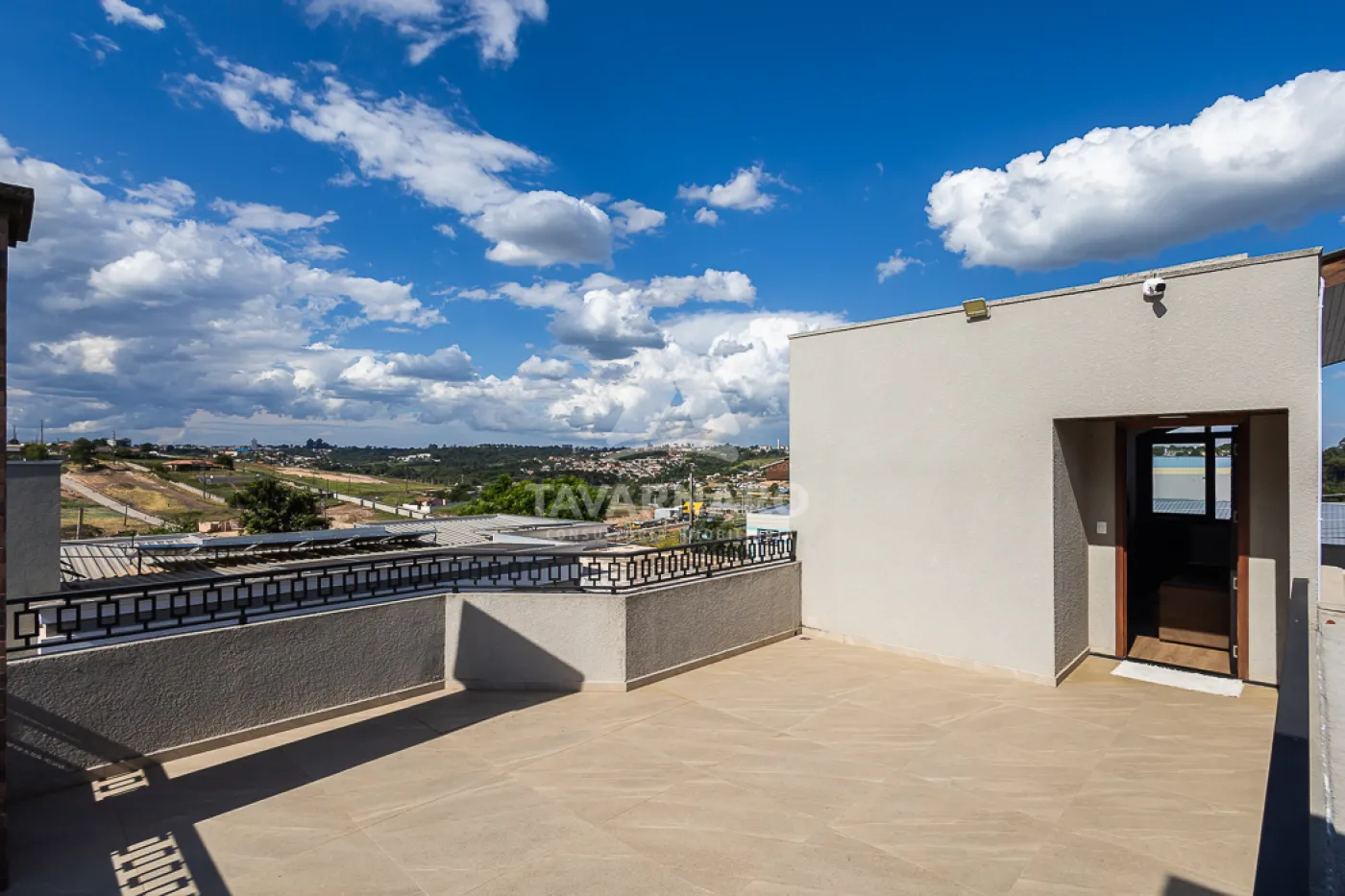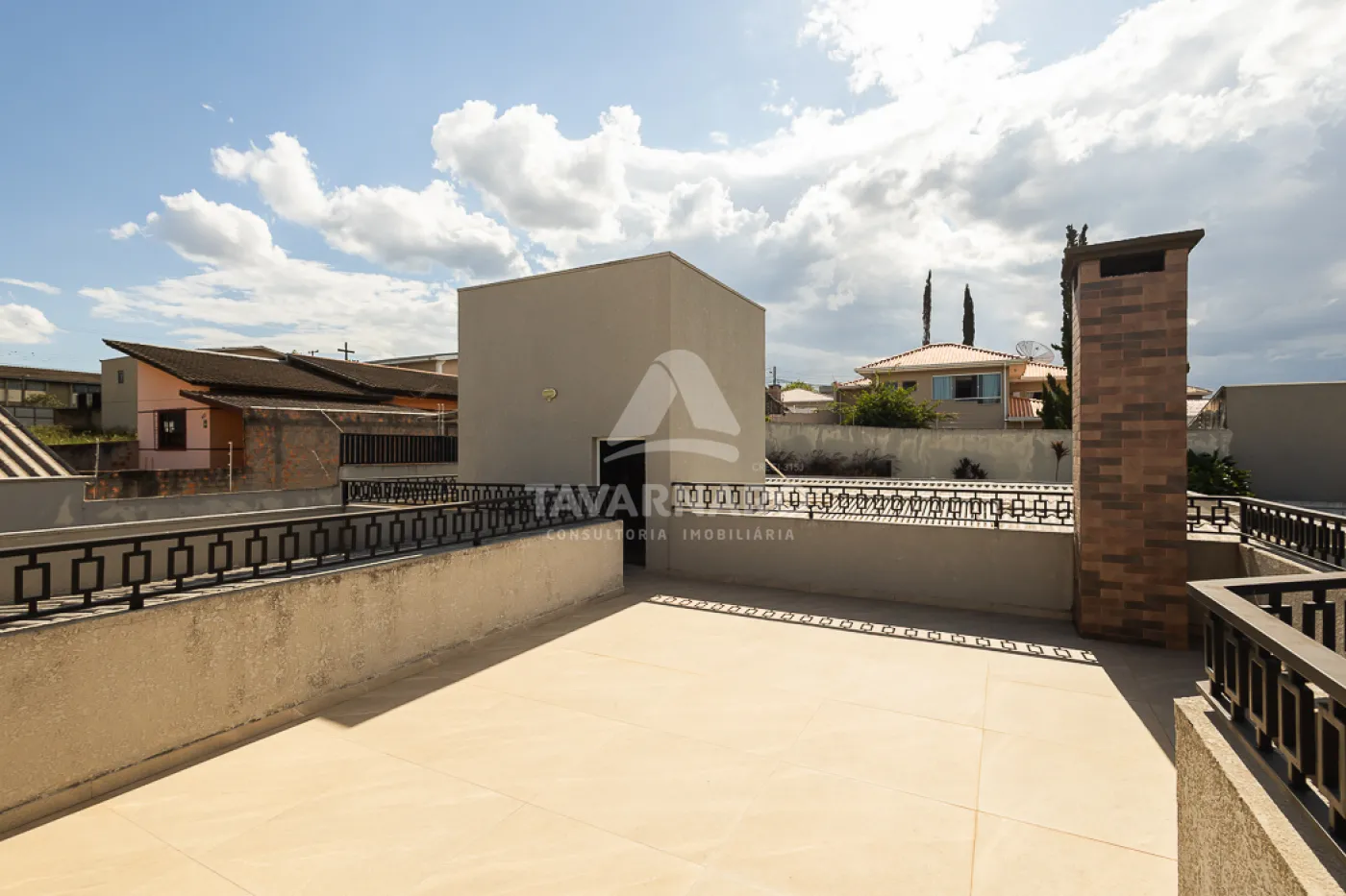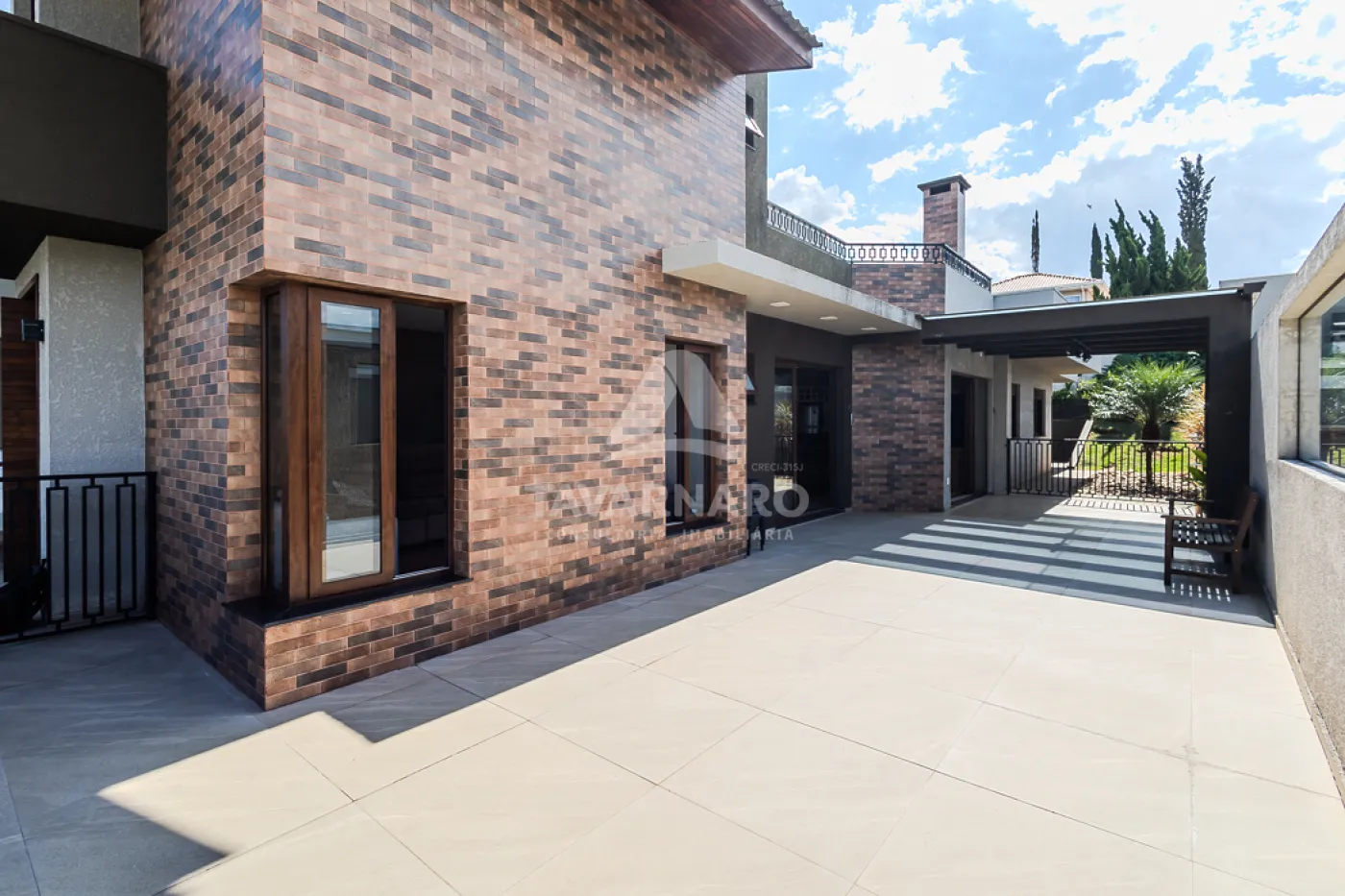 Garagem coberta para 2 carros lado a lado.