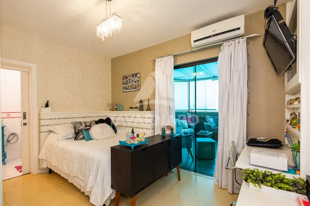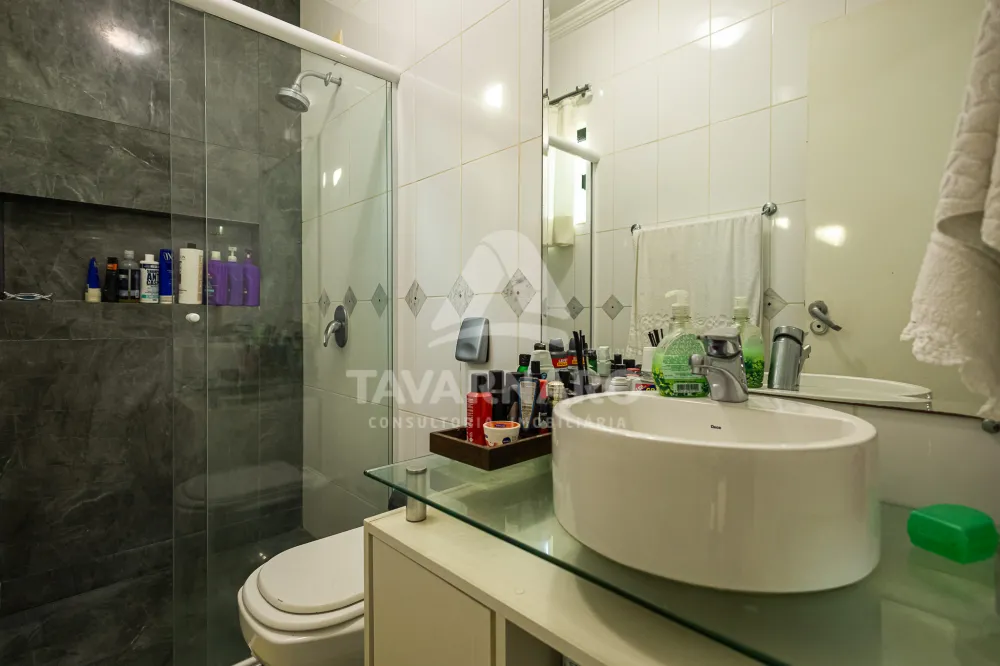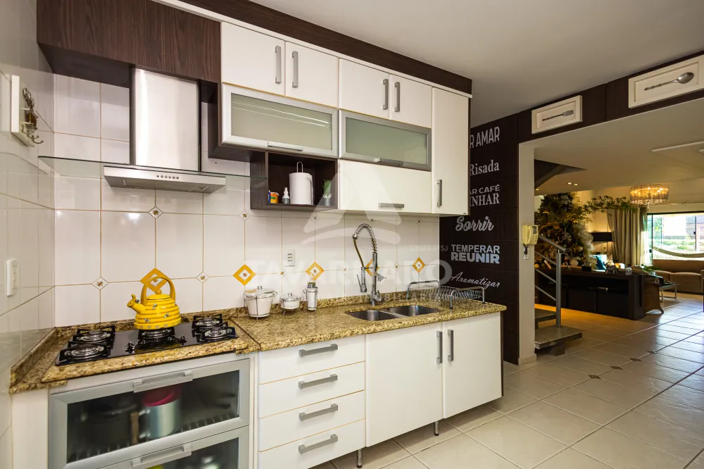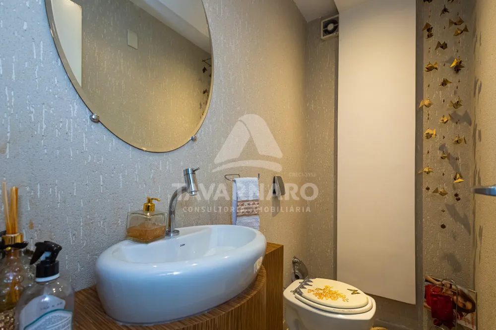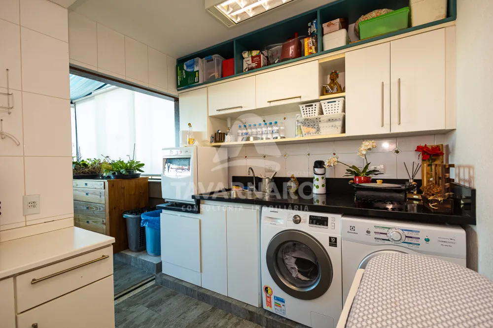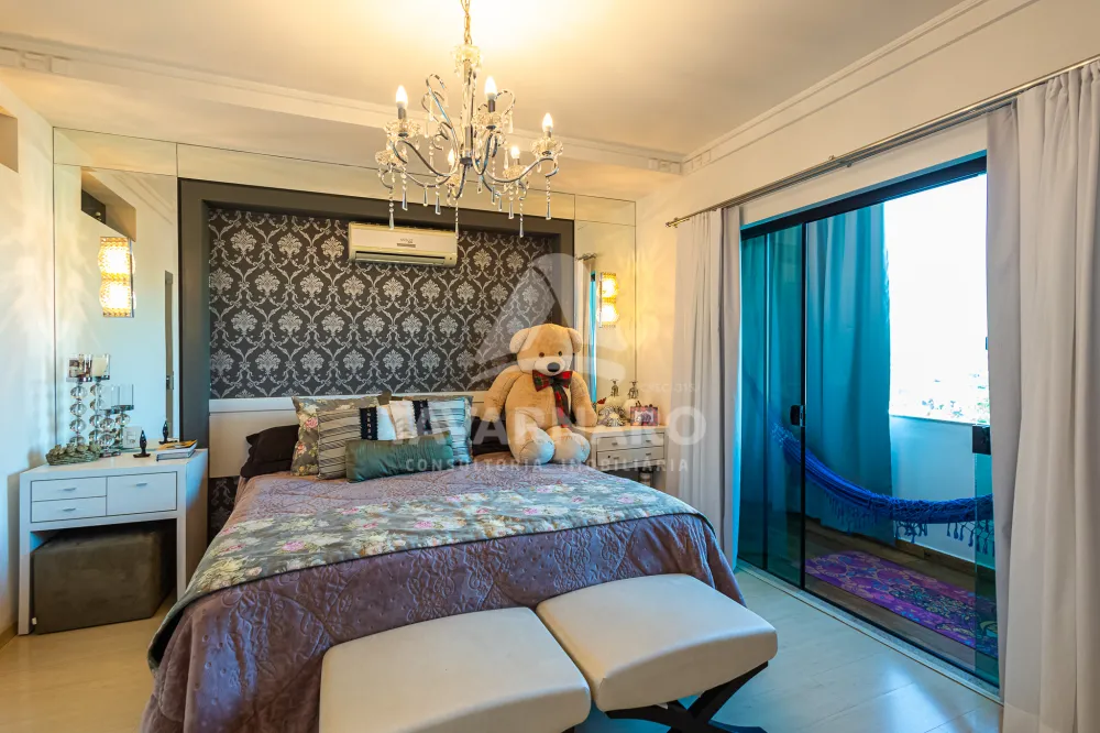 A área residencial conta com quatro suítes confortáveis, duas salas aconchegantes, uma cozinha prática e bem equipada, uma copa, uma lavanderia espaçosa e completa, além de um lavabo.
