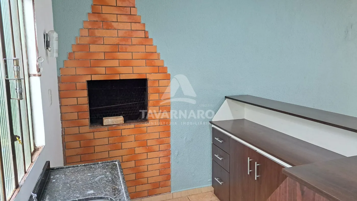 Espaço gourmet com churrasqueira. Aos fundos sobra de quintal.