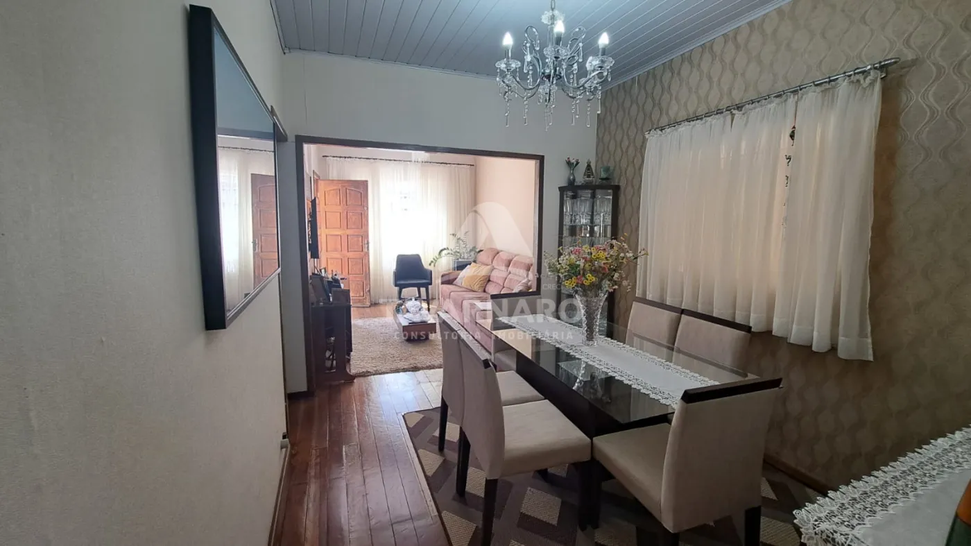 Possui 3 quartos, sala de estar, sala de jantar, cozinha, área de serviço e banheiro social.