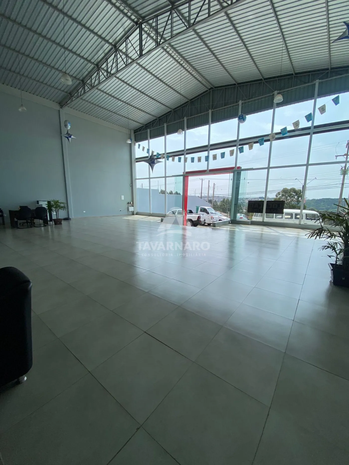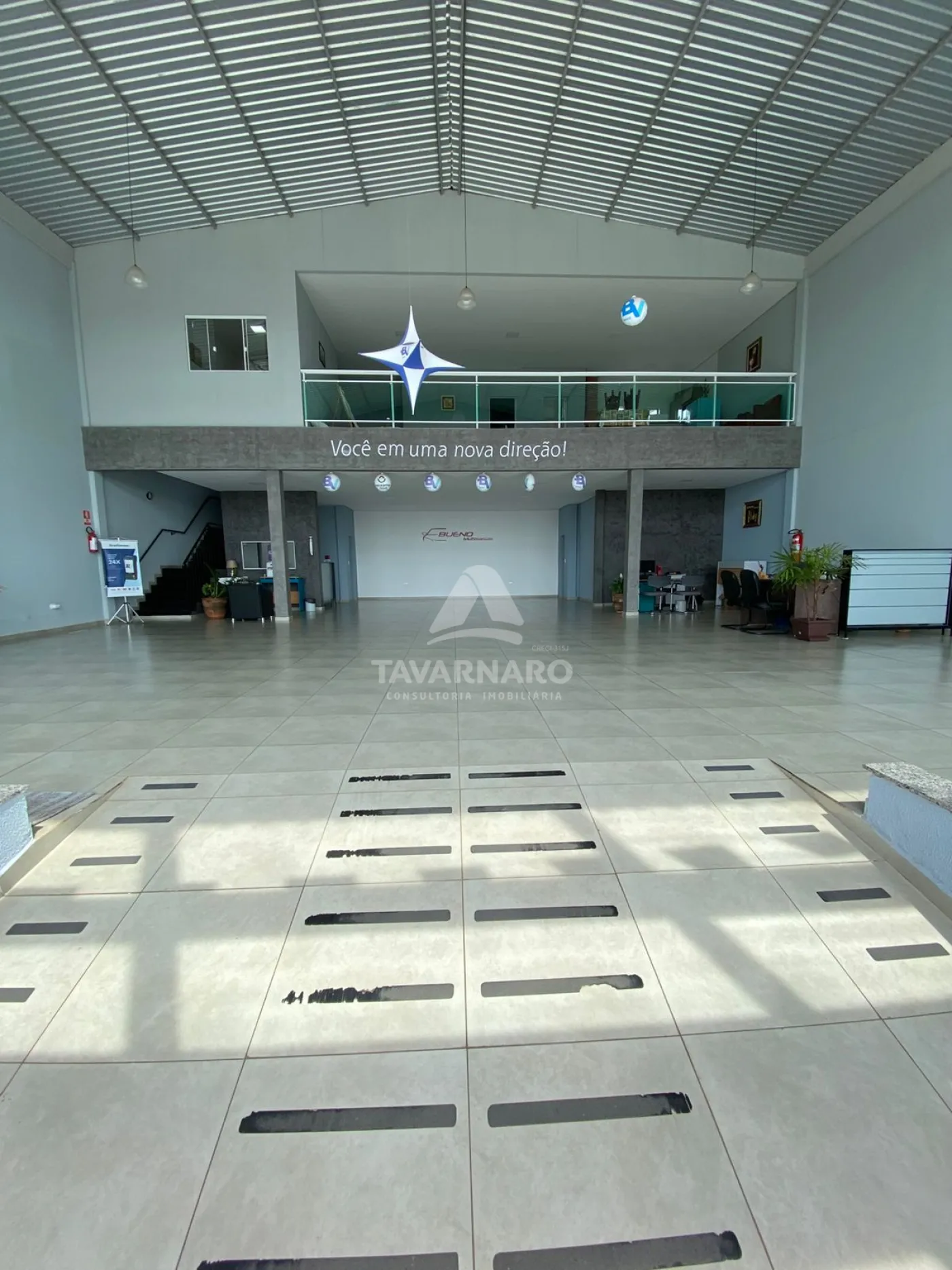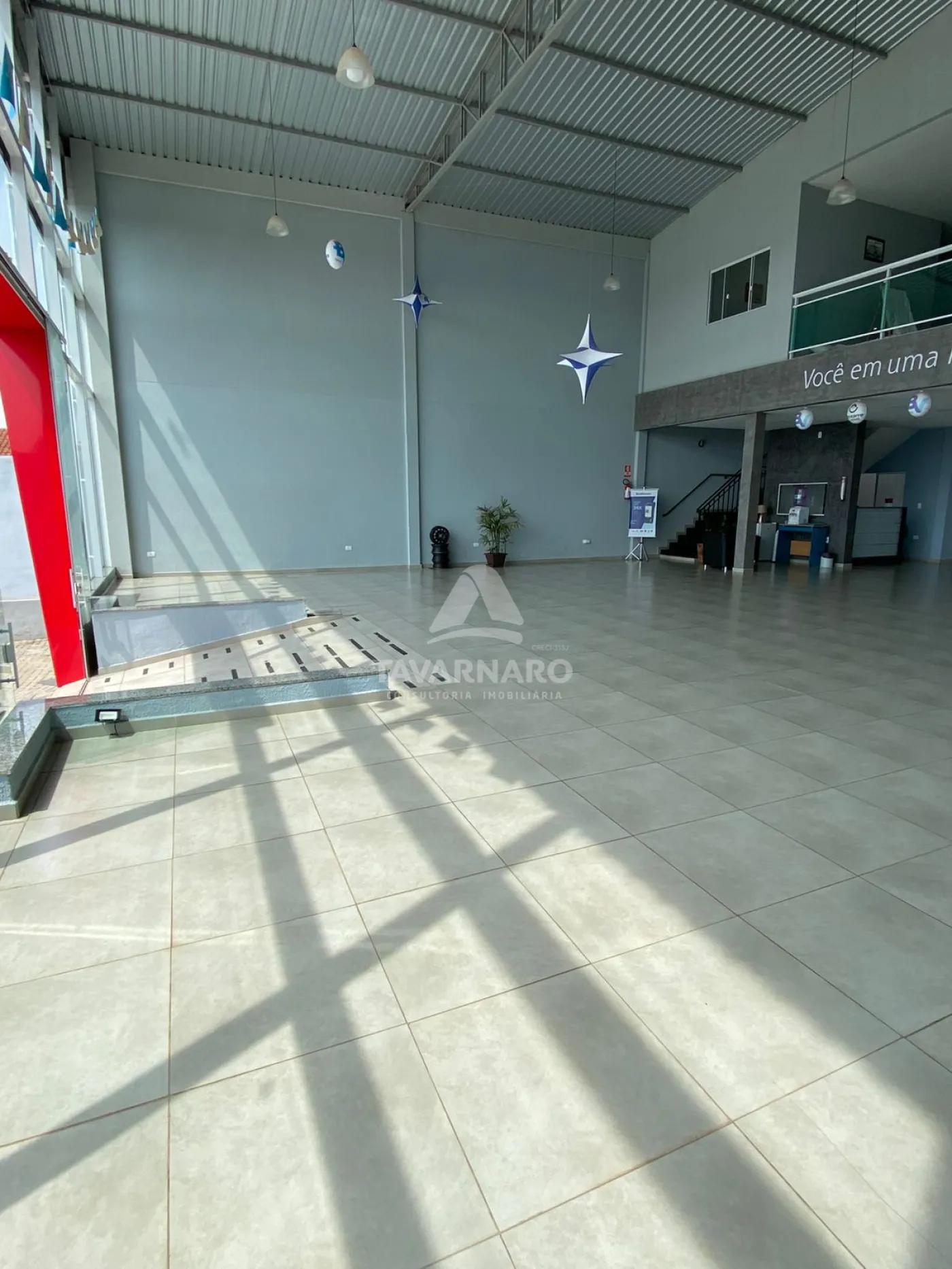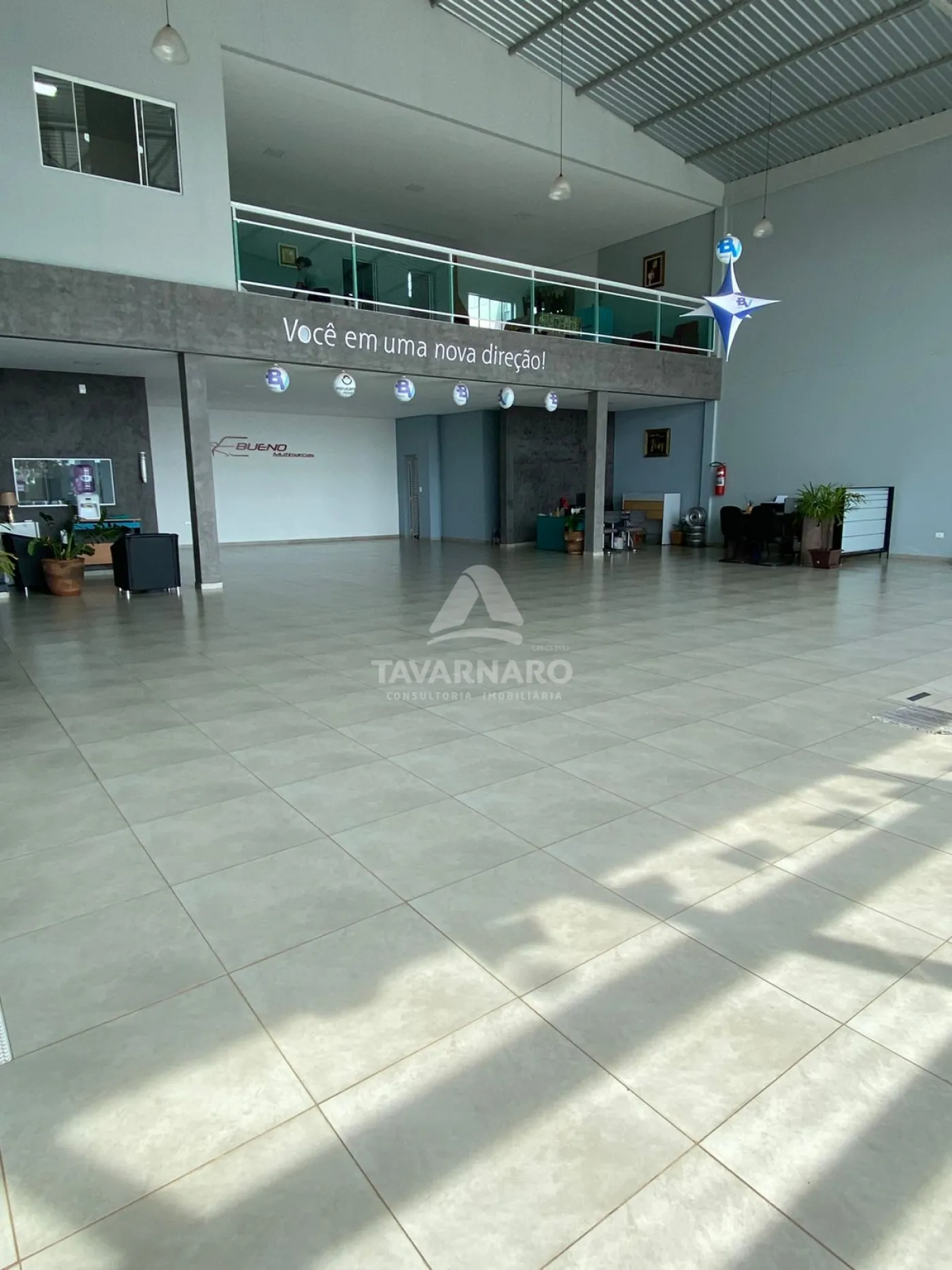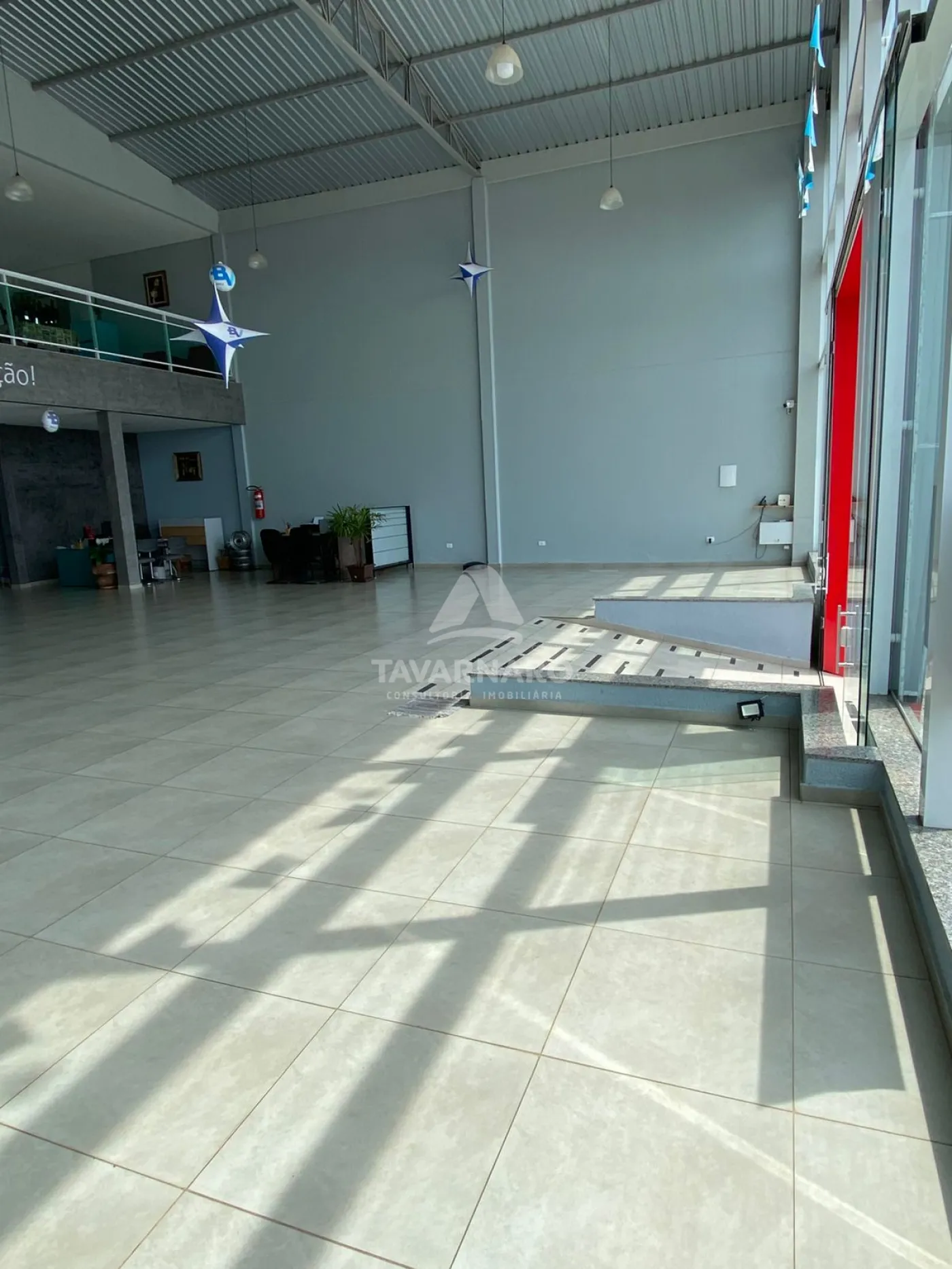 Pé direito medindo aproximadamente 8 metros, área construída de 370 m².