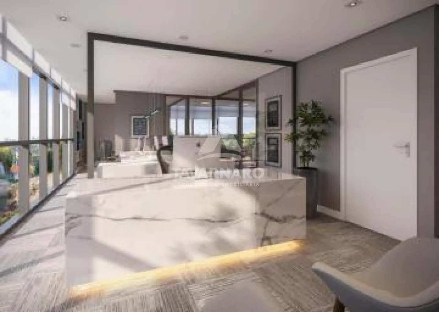 Como um cartão de visitas, o hall de entrada impressiona logo a primeira vista. Um espaço amplo e confortável, para que você receba seus clientes e colaboradores com muita exclusividade!