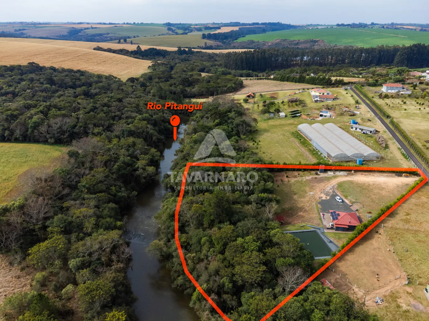 - 124 metros aos fundos com divisa com Rio Pitangui, toda cercada.