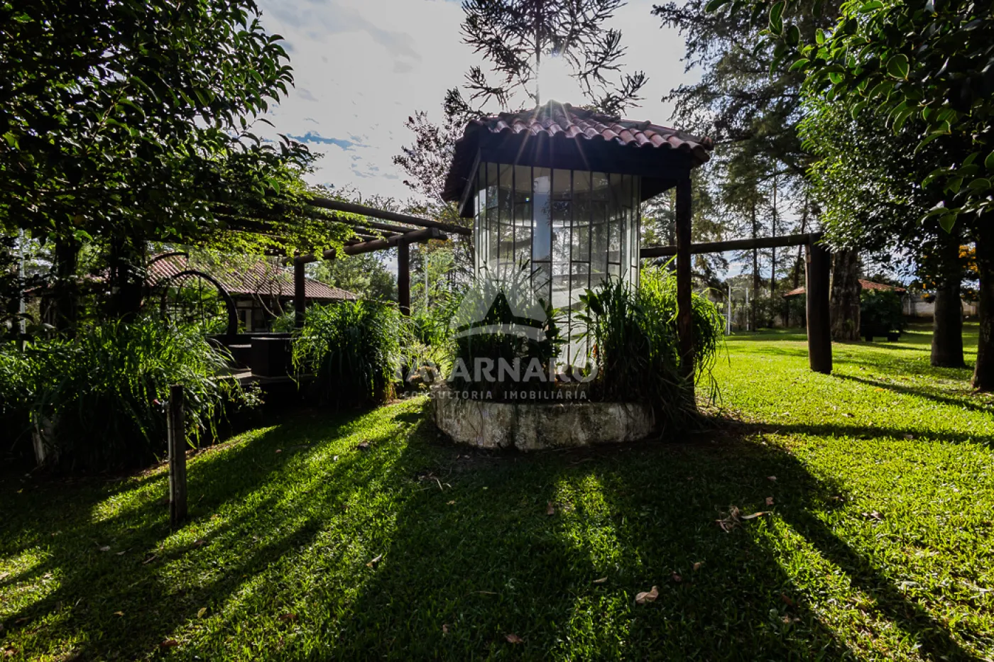 - Possui casa para caseiro, estábulo, canil, lago com peixes, horta, campo de futebol, quiosque com churrasqueira.