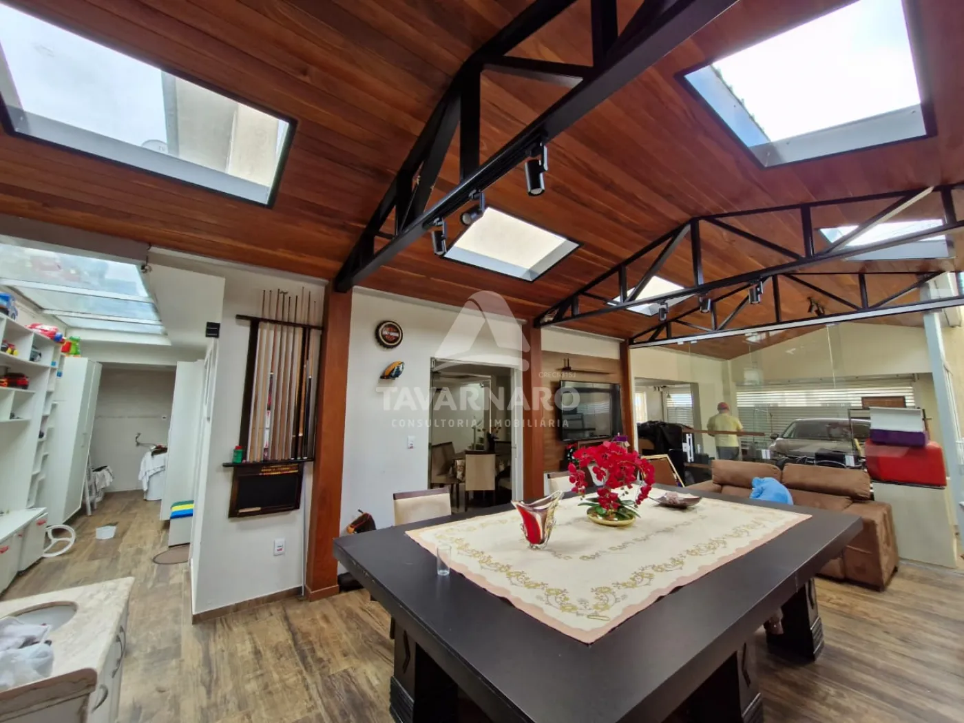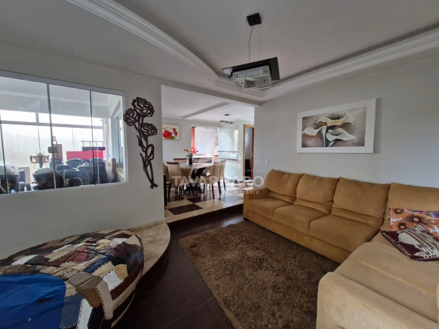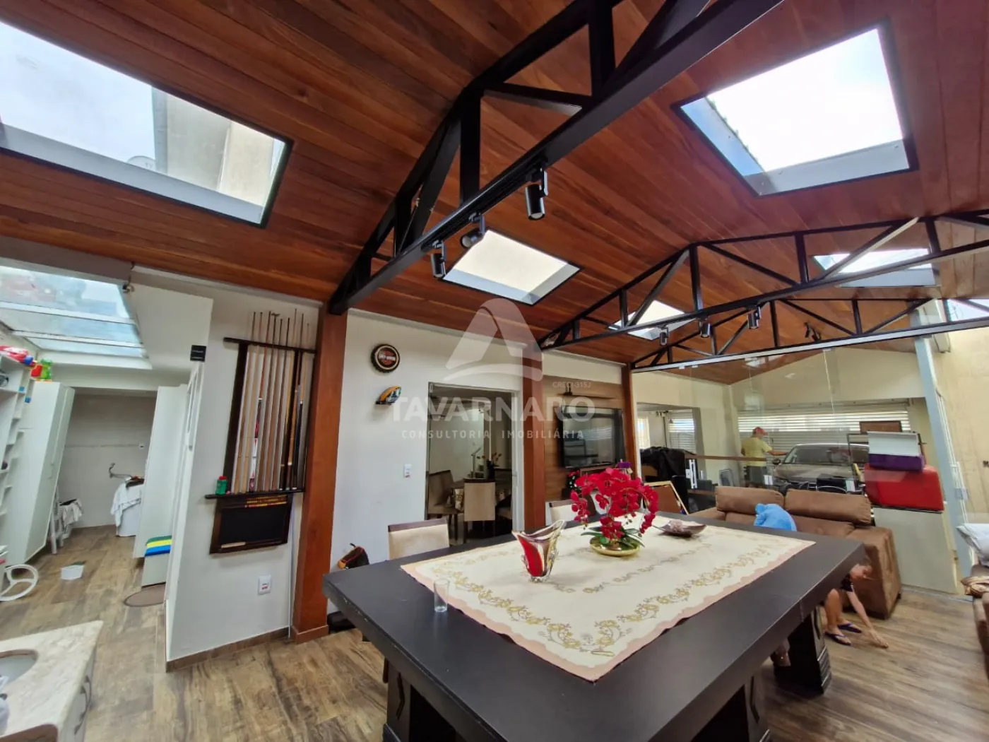 Possui 300 m² com 2 dormitórios, sendo uma suíte master com closet e sacada, ático, sala, cozinha planejada, lavabo, banheiro social, área de serviço, área gourmet, jardim de inverno e garagem para 3 veículos.