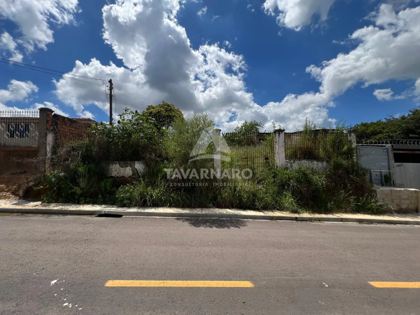 Terrenos cercados de muro e com calçadas e ruas asfaltadas.